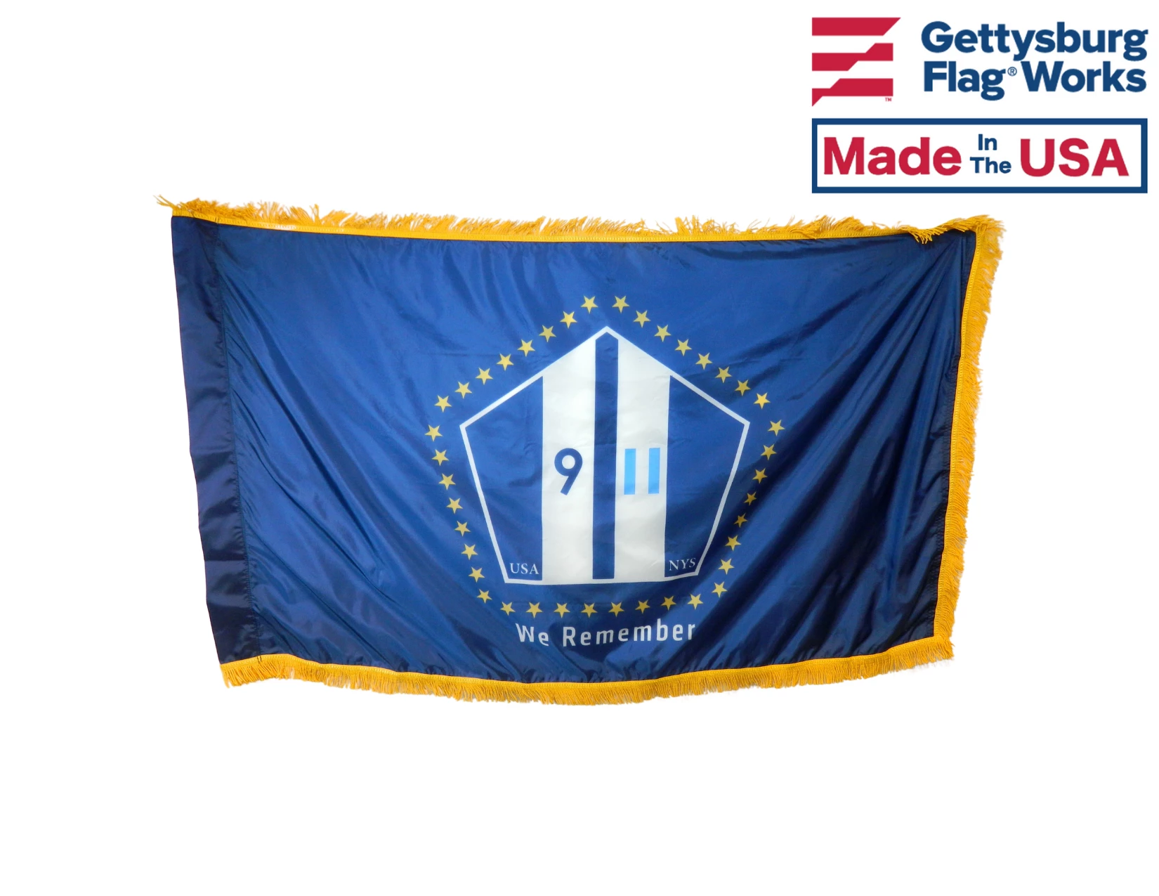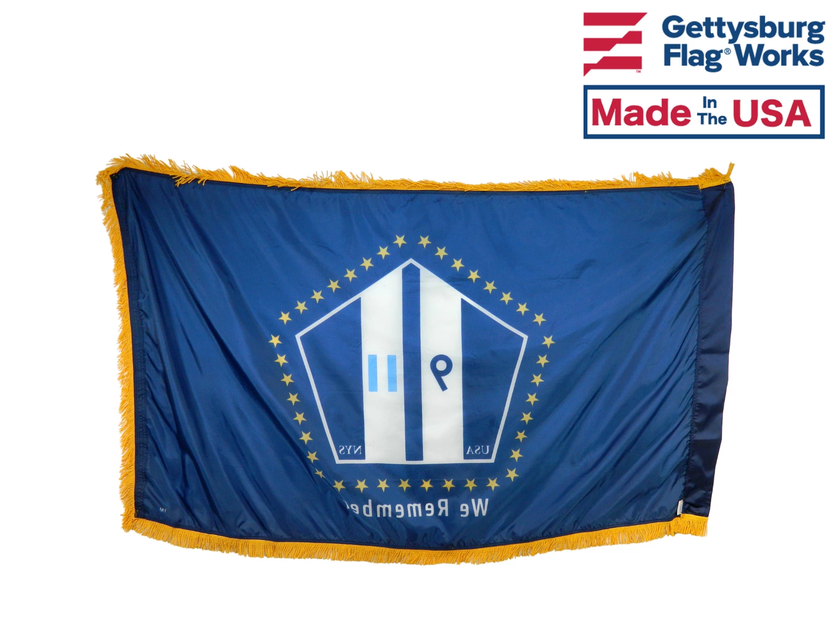 We Remember 9/11 Memorial flag for indoor and parade use.