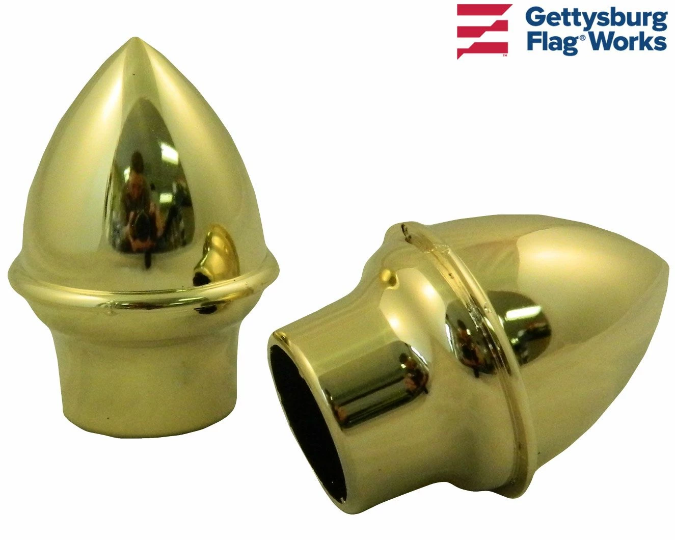 These are typically used on the left and right ends of a marching banner pole, NOT a vertical pole. Vertical poles are typically tapered at the top for a spear, eagle or other sort of finial and these acorns have a larger diameter than those types of finials, so these will not work.
