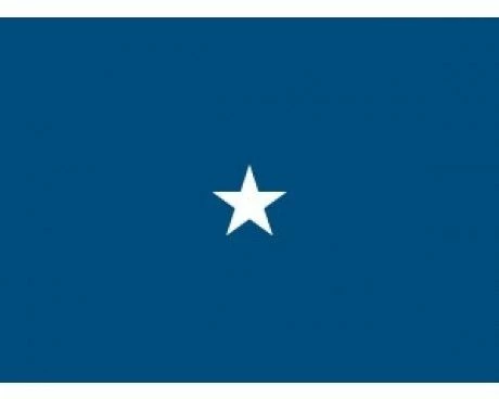 White applique (sewn) star on an Air Force Blue background with ornamental pole hem and fringe for formal use. Please contact us for pricing on other sizes or types of mounting.