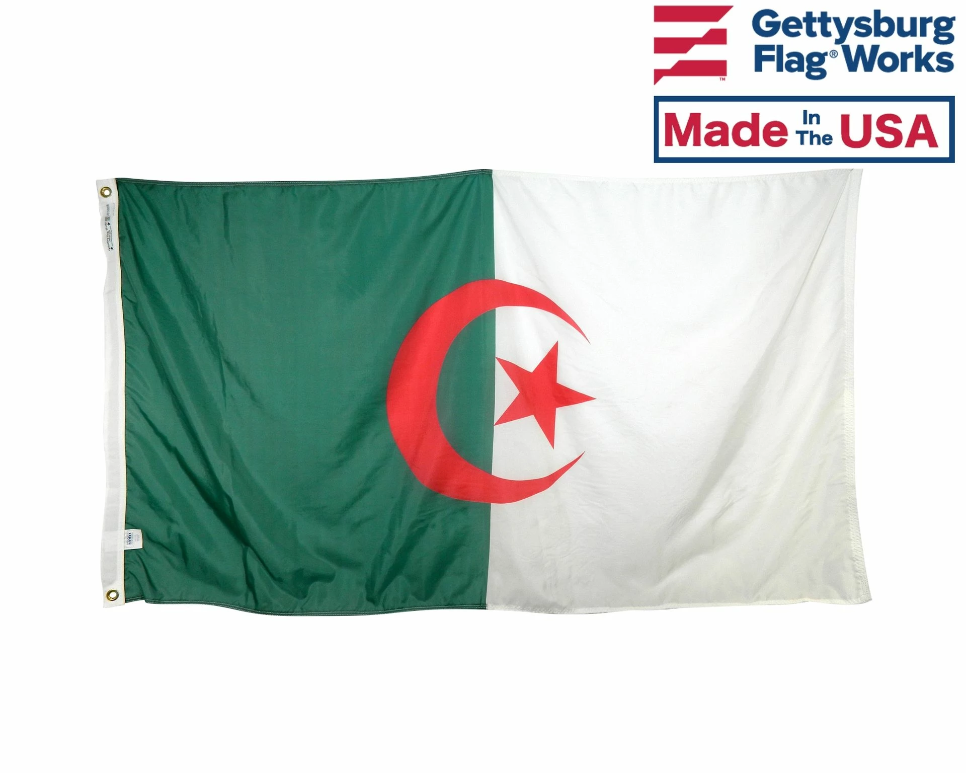 Beautiful, high-quality nylon Algeria flags for mounting on most flagpoles. Choose your size and mounting type.