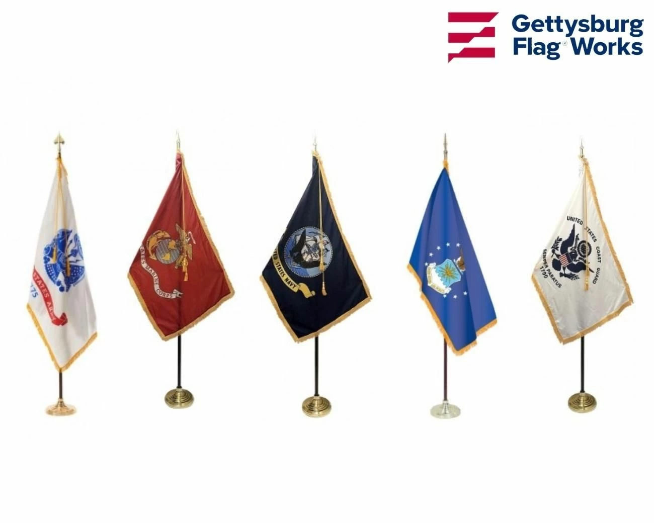 Indoor Military Flag Sets (5 branches) for formal display, includes all necessary hardware.