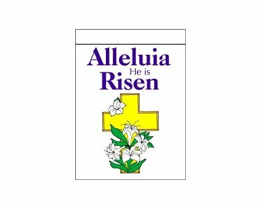 Alleluia, He is Risen. Cross and Easter Lilies.