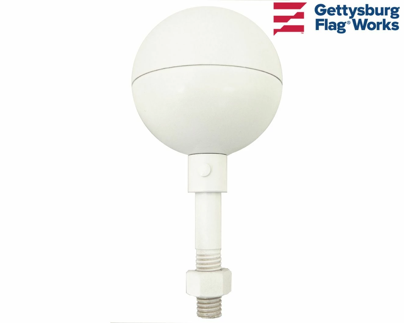 Ball flagpole finial available in an array of colors, these aluminum ornaments are our most popular flagpole finial. All are supplied mounted to a spindle which screw into the truck or cap at the top of your flagpole. Typically, we recommend that your ball diameter be the same as the largest diameter on your flagpole, but if you prefer a different size, there are not true rules that apply.