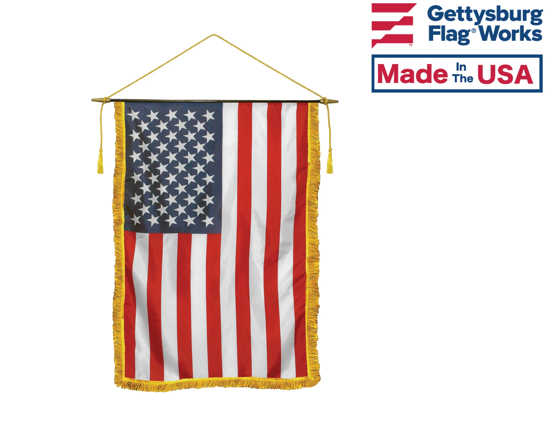Made of the same fine grade fabric as our classroom flags, these banners come complete with crossbar, gilt spear ends, and cord and tassels.