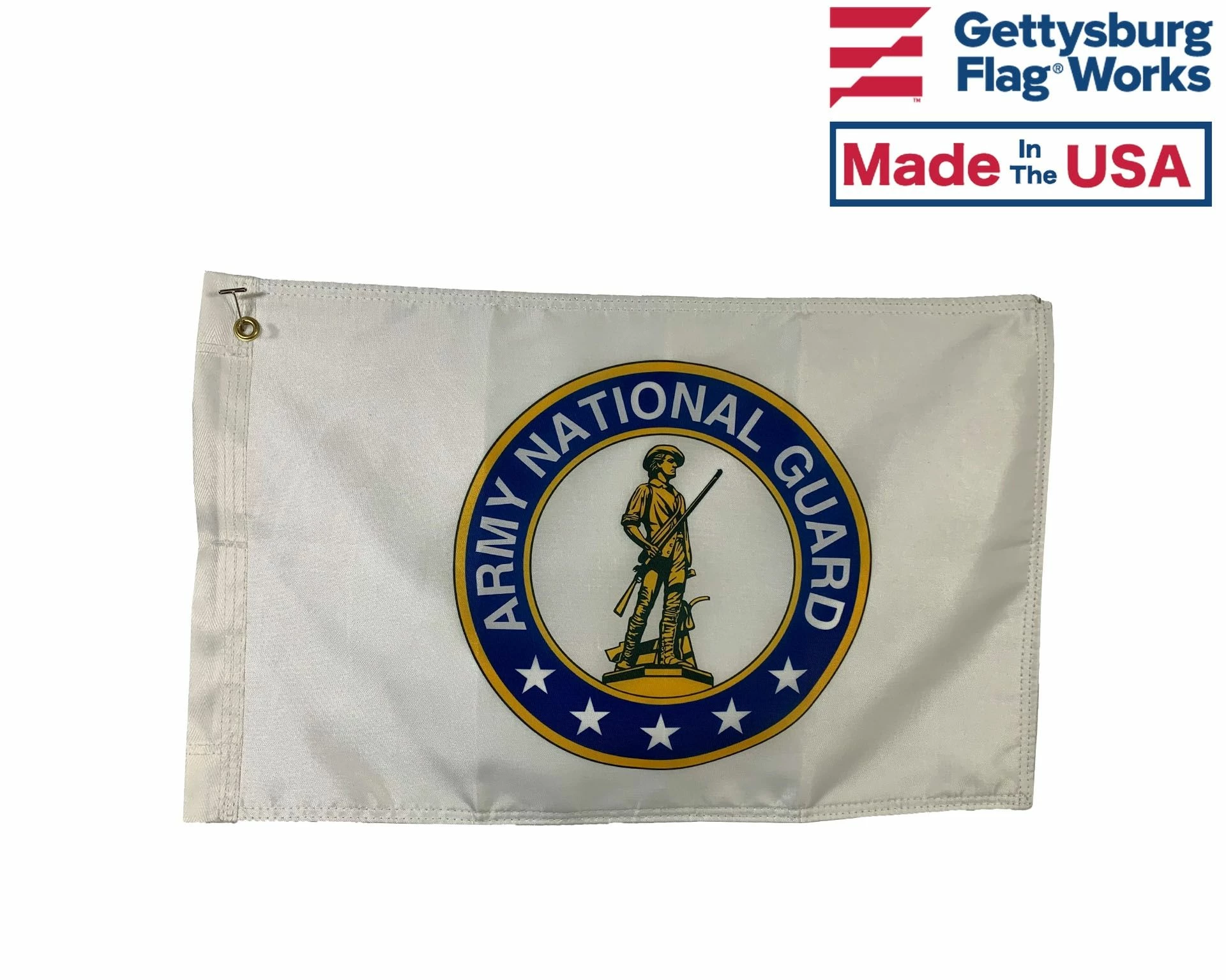 Digitally printed, double sided Army National Guard flag for mounting on motorcycle. Choose your size and mounting type. Made in the USA!