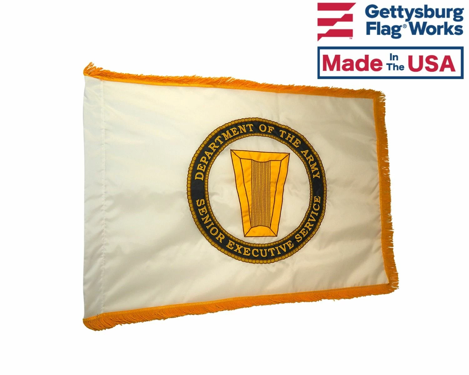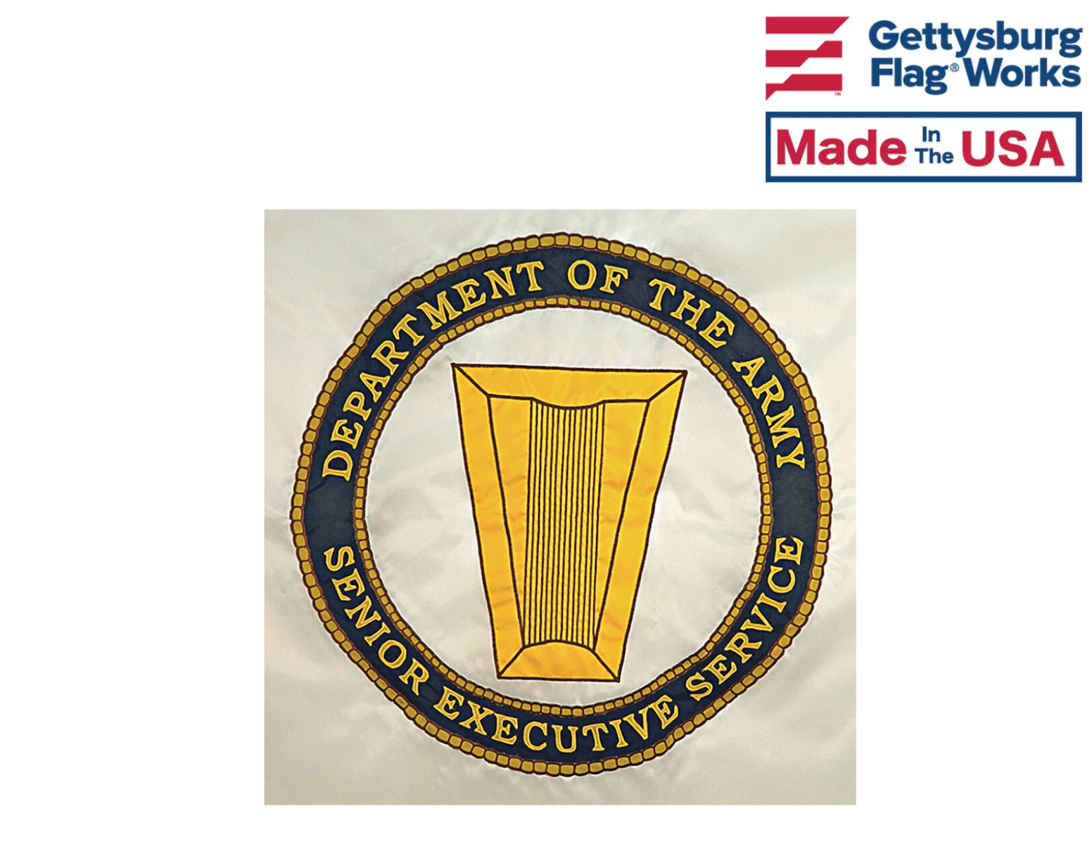 U.S. Army Senior Executive Service (S.E.S.) Flag. Choose from Government Spec 3×4′ and 3×5′ sizing with applique sewn stitching or less formal digitally printed designs. Available in indoor and outdoor styles. Made in USA.