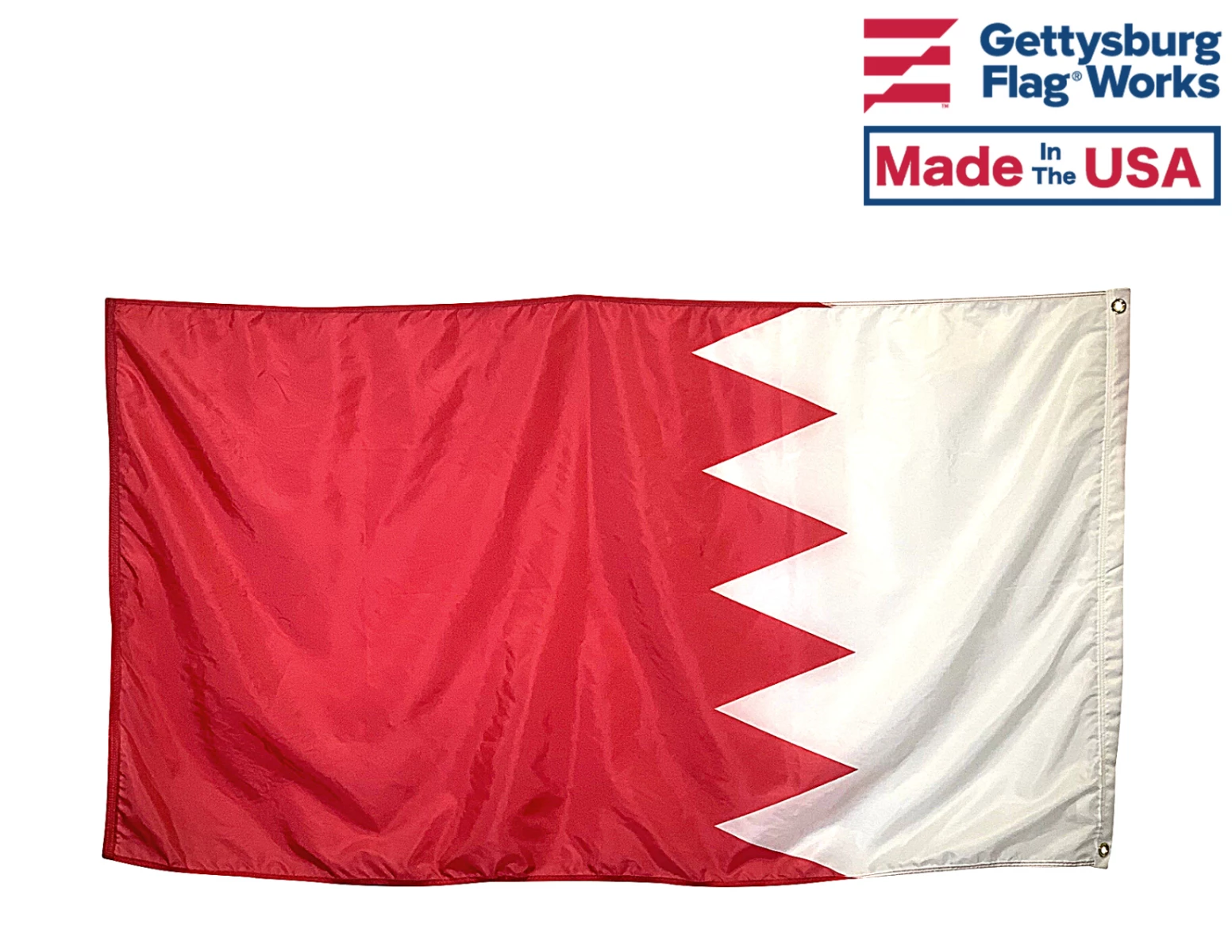 Beautiful, high-quality nylon Bahrain flags for mounting on most flagpoles. Choose your size and mounting type. Made in the USA!