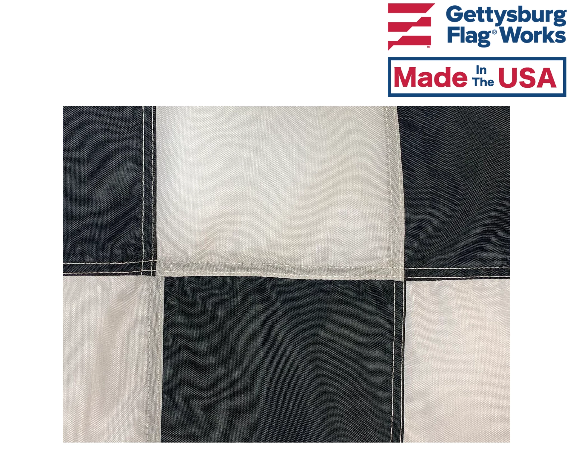 The classic racing end-of-race flag composed of black and white checkered pattern.