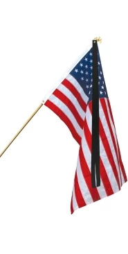 Our mourning ribbon is made of 100% nylon. Featuring a brass grommet, it attaches easily to a variety of flags and flagpoles – including