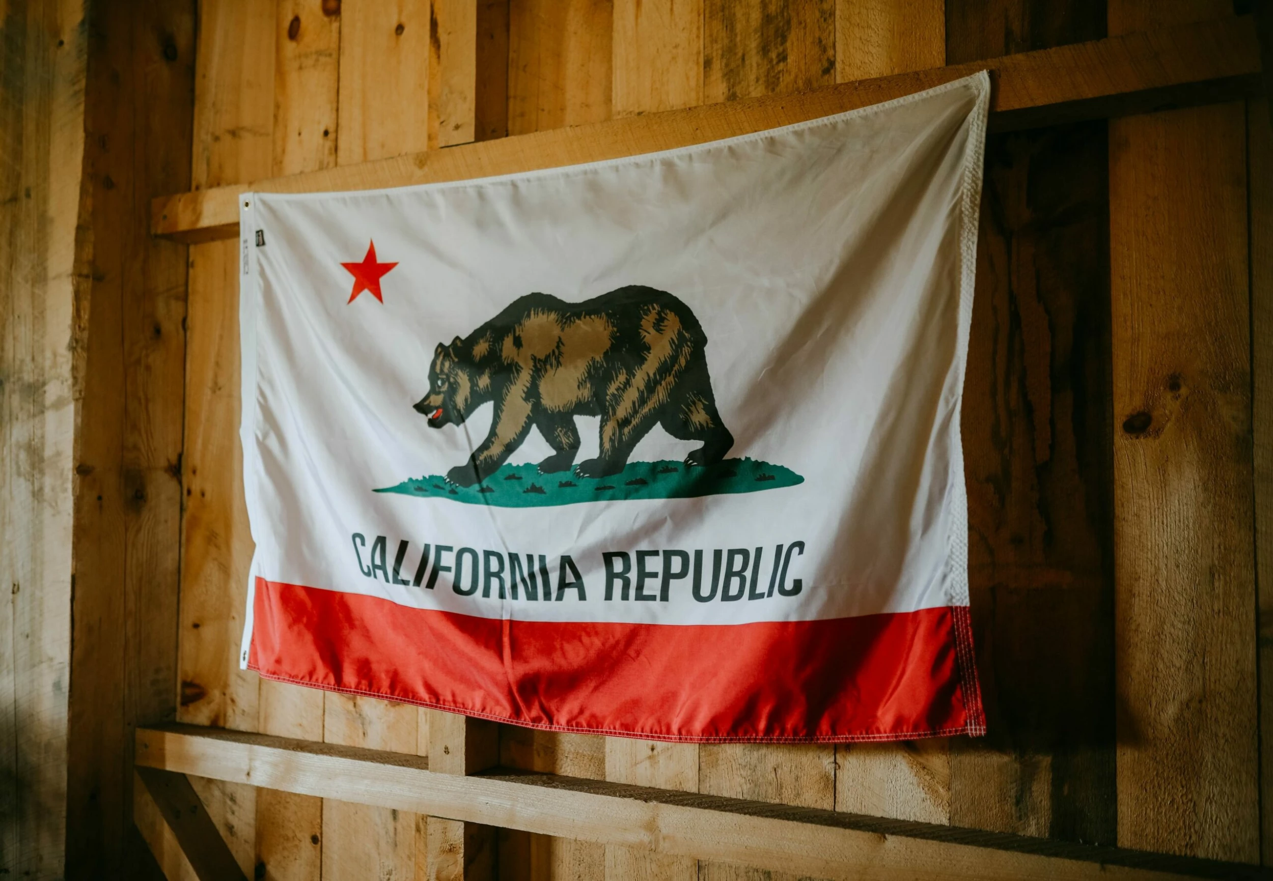 Iconic State Flag of California Republic featuring the Golden Bear and Red Star.