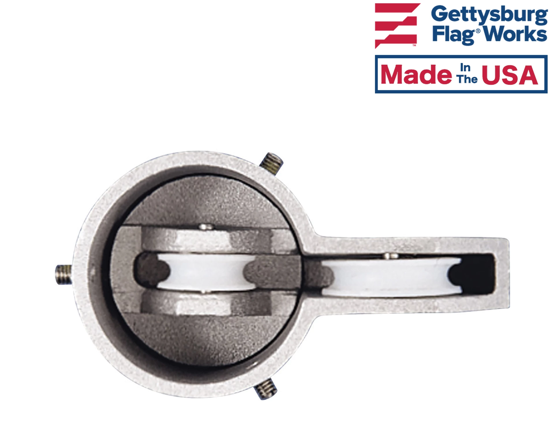 Replacement truck for your internal halyard flagpole. Stationary cap style with a single pulley.
