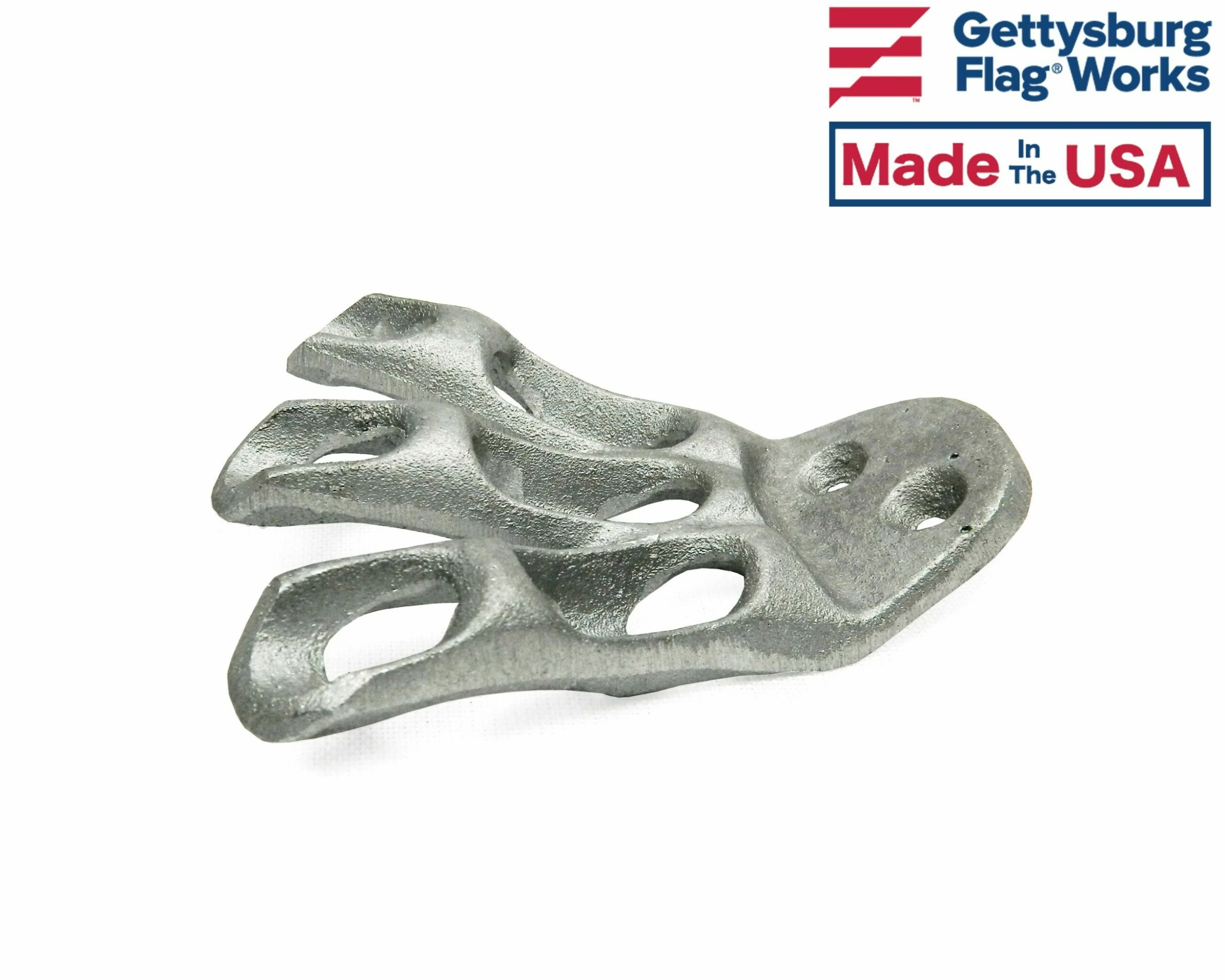Durable wall mounted option to display stick flags, thick cast aluminum.