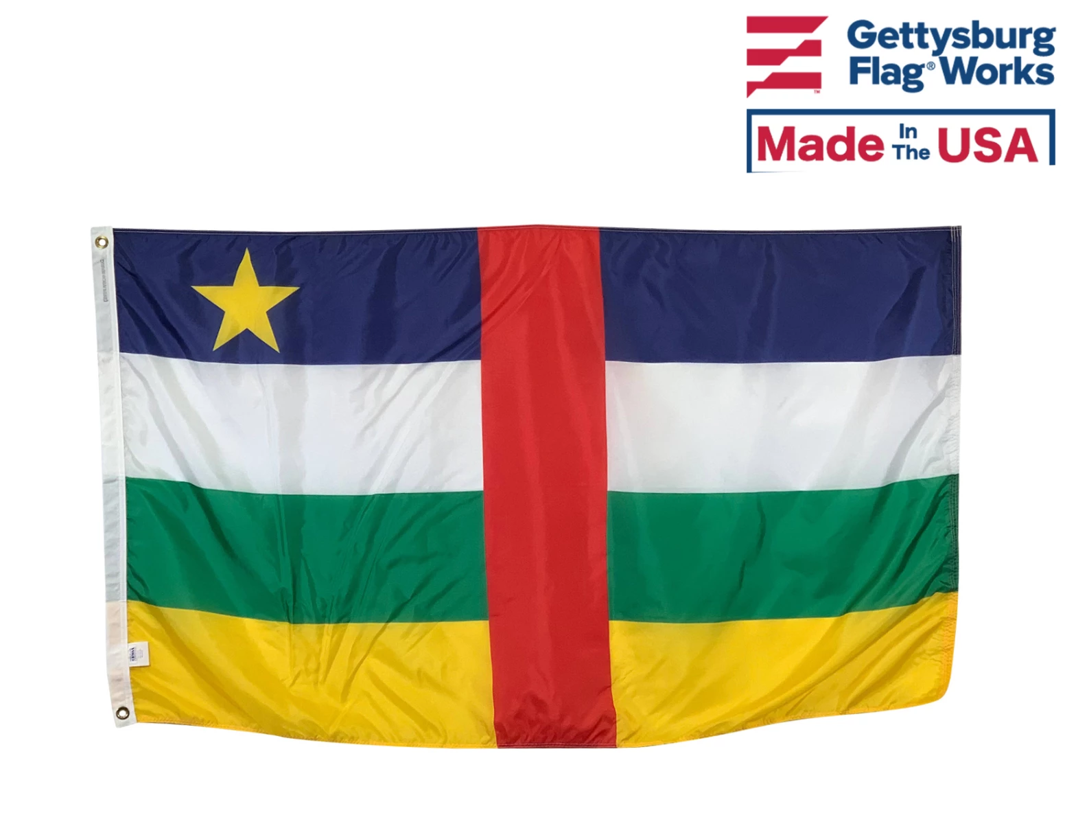 Beautiful, high-quality nylon Central African Republic flags for mounting on most flagpoles. Choose your size and mounting type. Made in the USA!