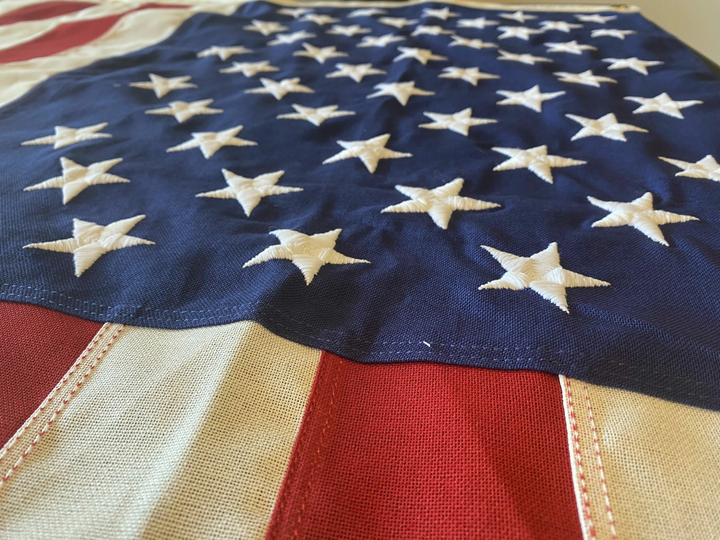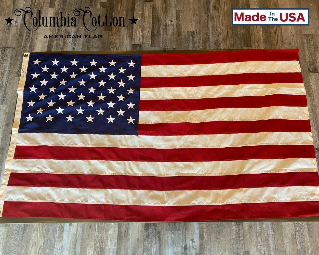 Columbia Cotton™ American Flags by Gettysburg Flag Works. This is a flag that hearkens back to shared American traditions, constructed using only the finest materials and made with pride by American hands. Featuring tan “Heritage” header, this flag is a perfect compliment for those who seek to embrace American roots, values and foundations. Ideal for framing or use in memorial flag cases or to capture a historic, authentic looking flag when flying outdoors. Pride. Liberty. Honor. Columbia Calls.