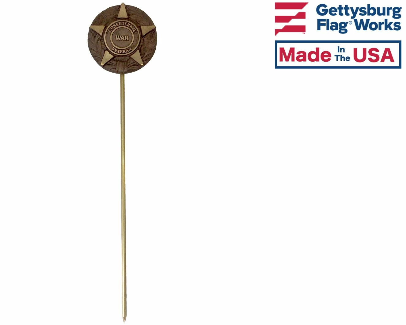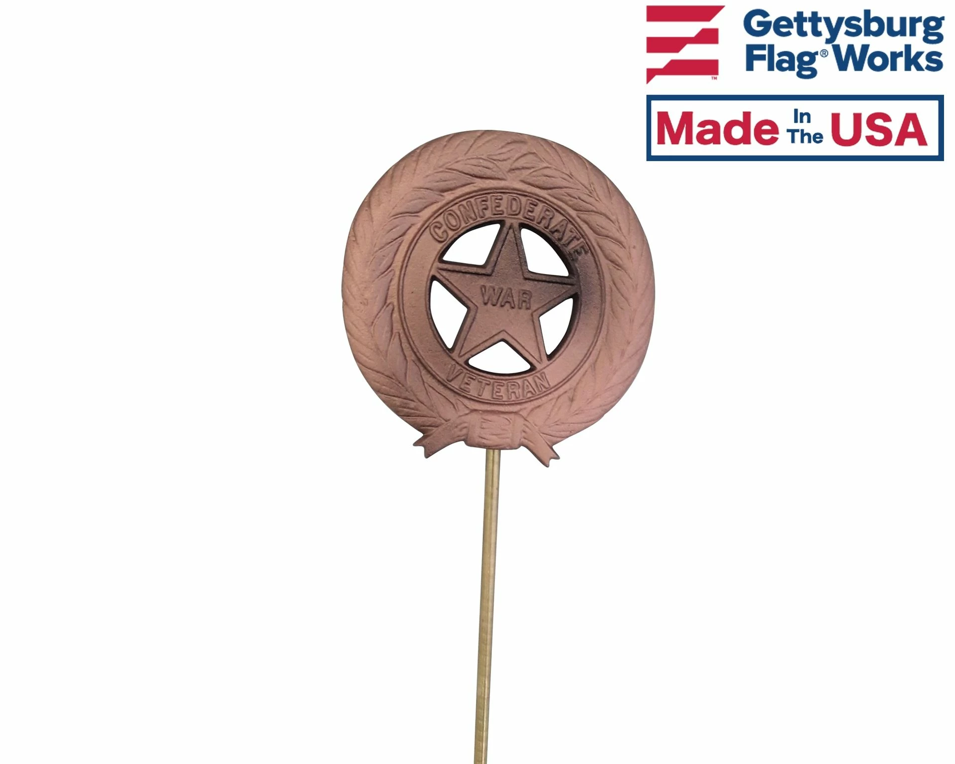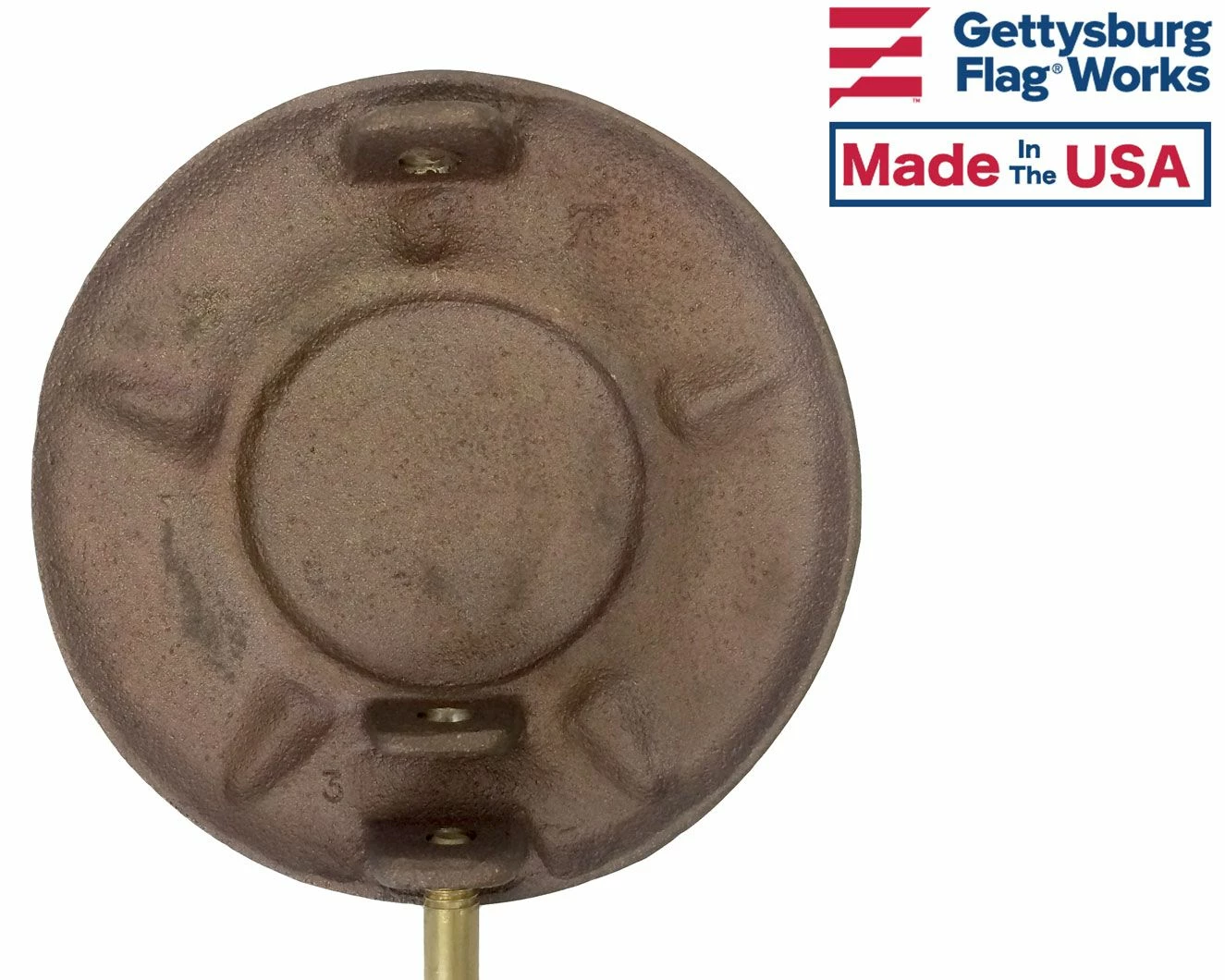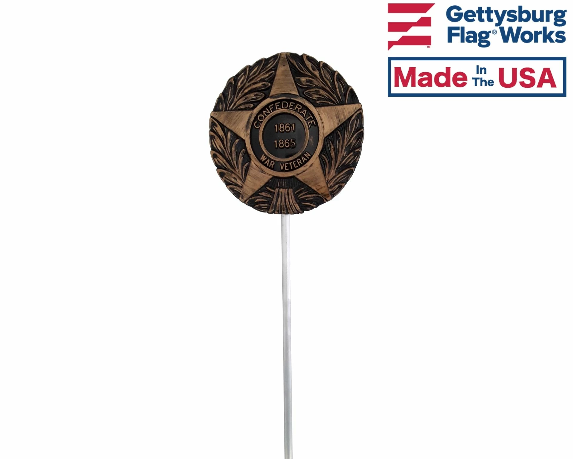 - Cast bronze marker is mounted on a 21″ brass rod and holds one 12×18″ stick flag on a 3/8″ staff (flag not included).