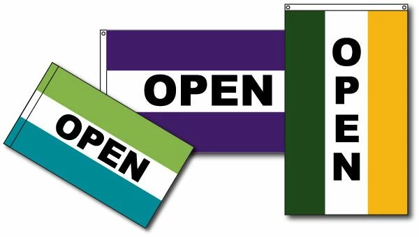 OPEN flags are available in your choice of stock nylon colors as seen here: available colors