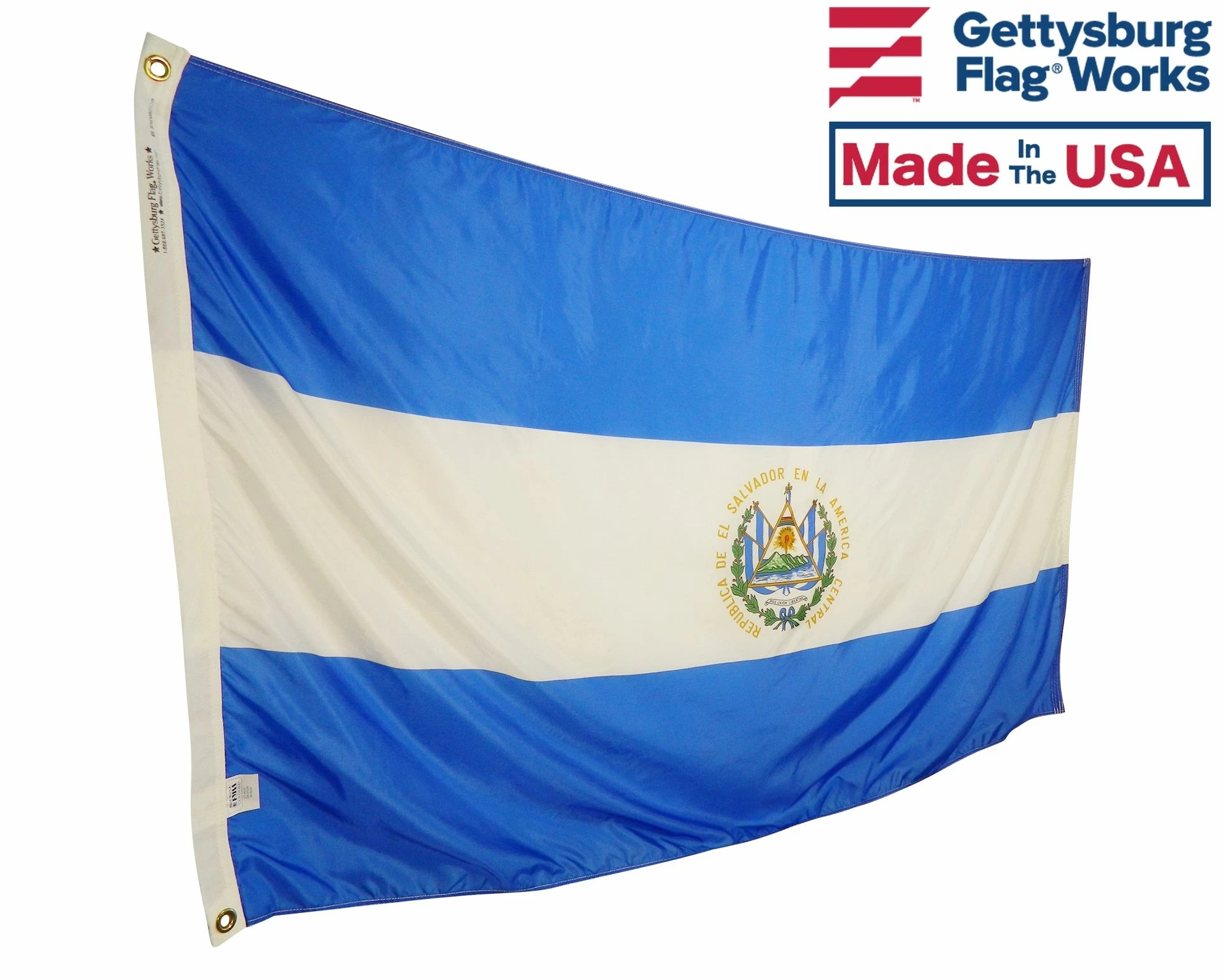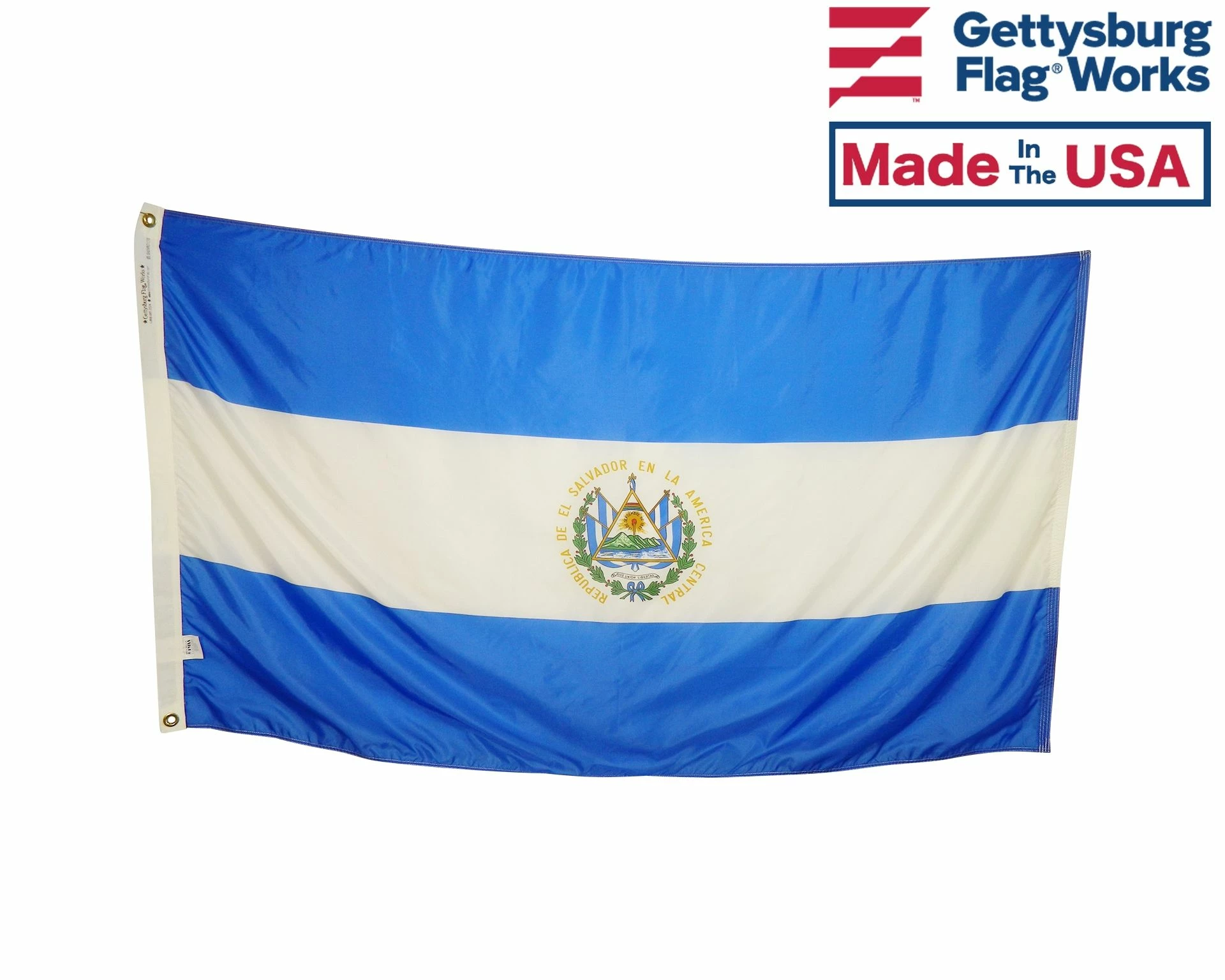 Beautiful, high-quality nylon El Salvador flags for mounting on most flagpoles.