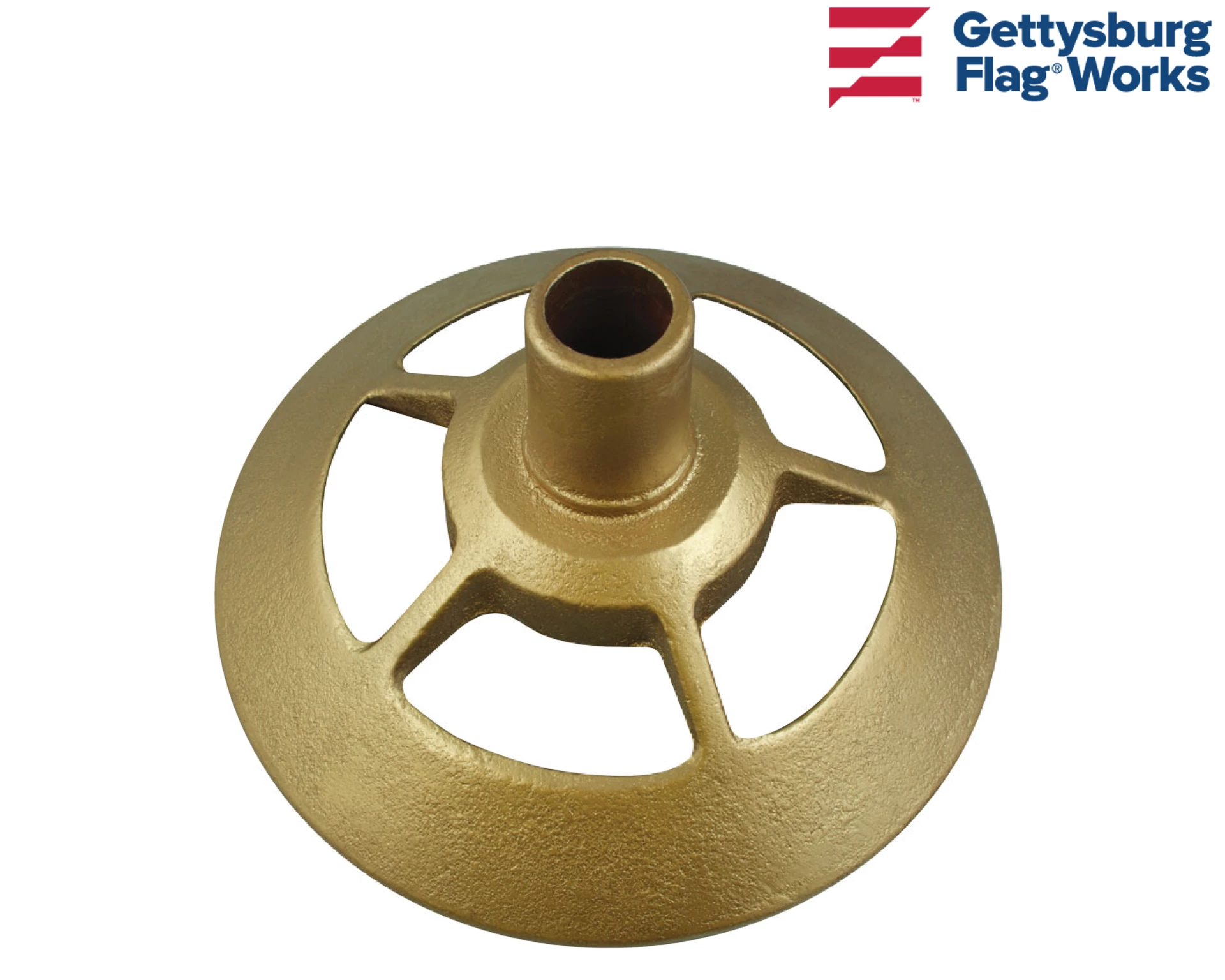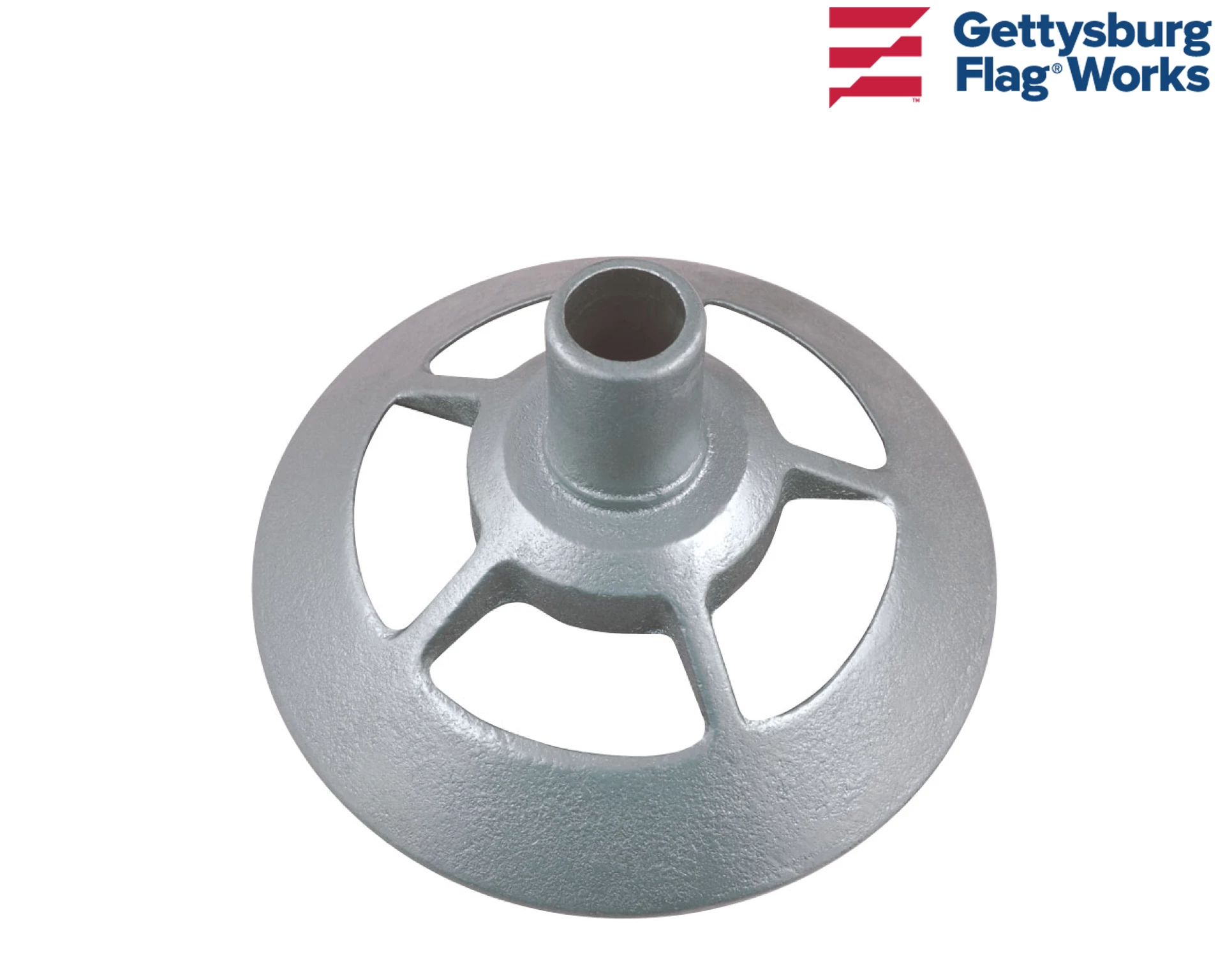 Cast, tip-proof flag pole base with universal bore. Supplied with adapter sleeves to accommodate various pole diameters.