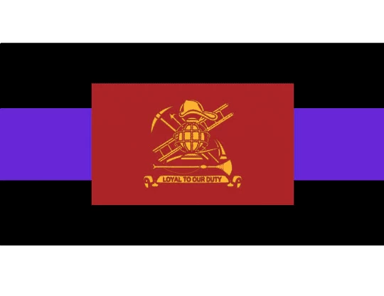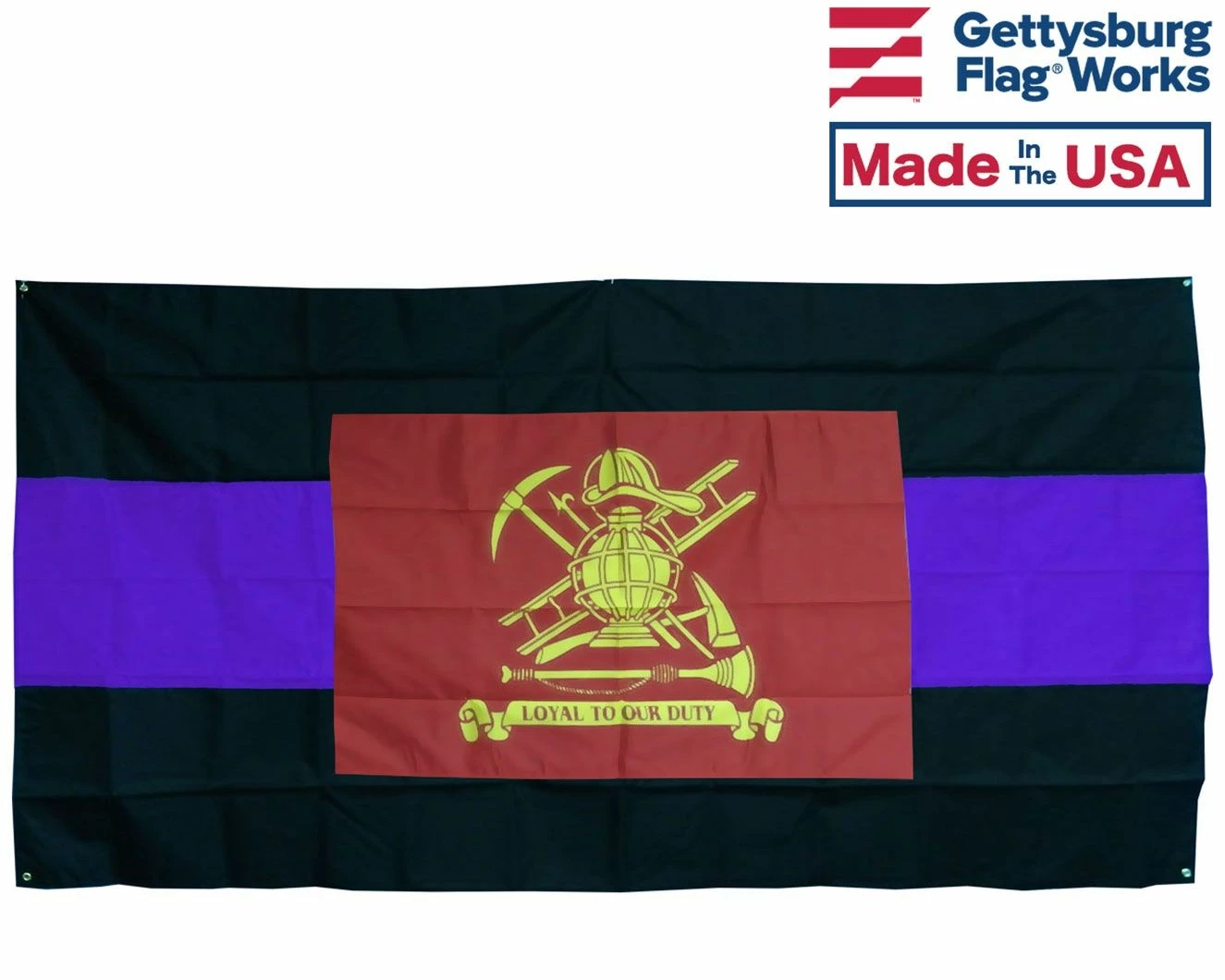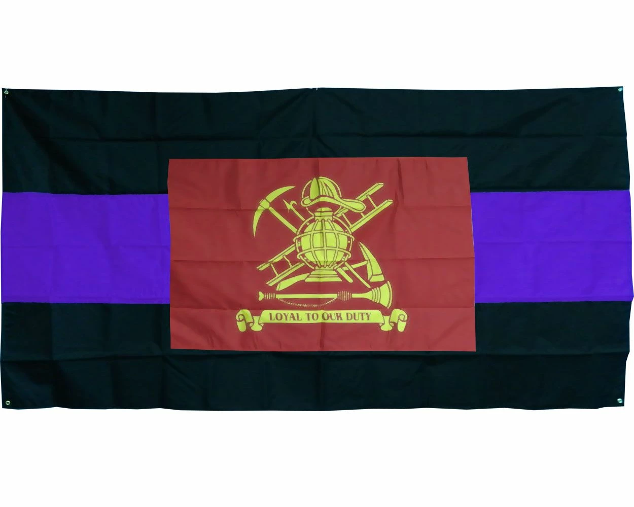 Nylon Firefighter casket drape, black-purple-black with red Loyal to Our Duty flag appliquéd at center to celebrate a life of service.