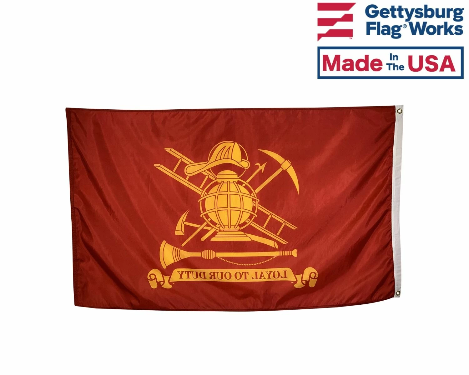 Nylon fireman flag with with canvas header and grommets. High quality outdoor flag. Loyal to our duty.