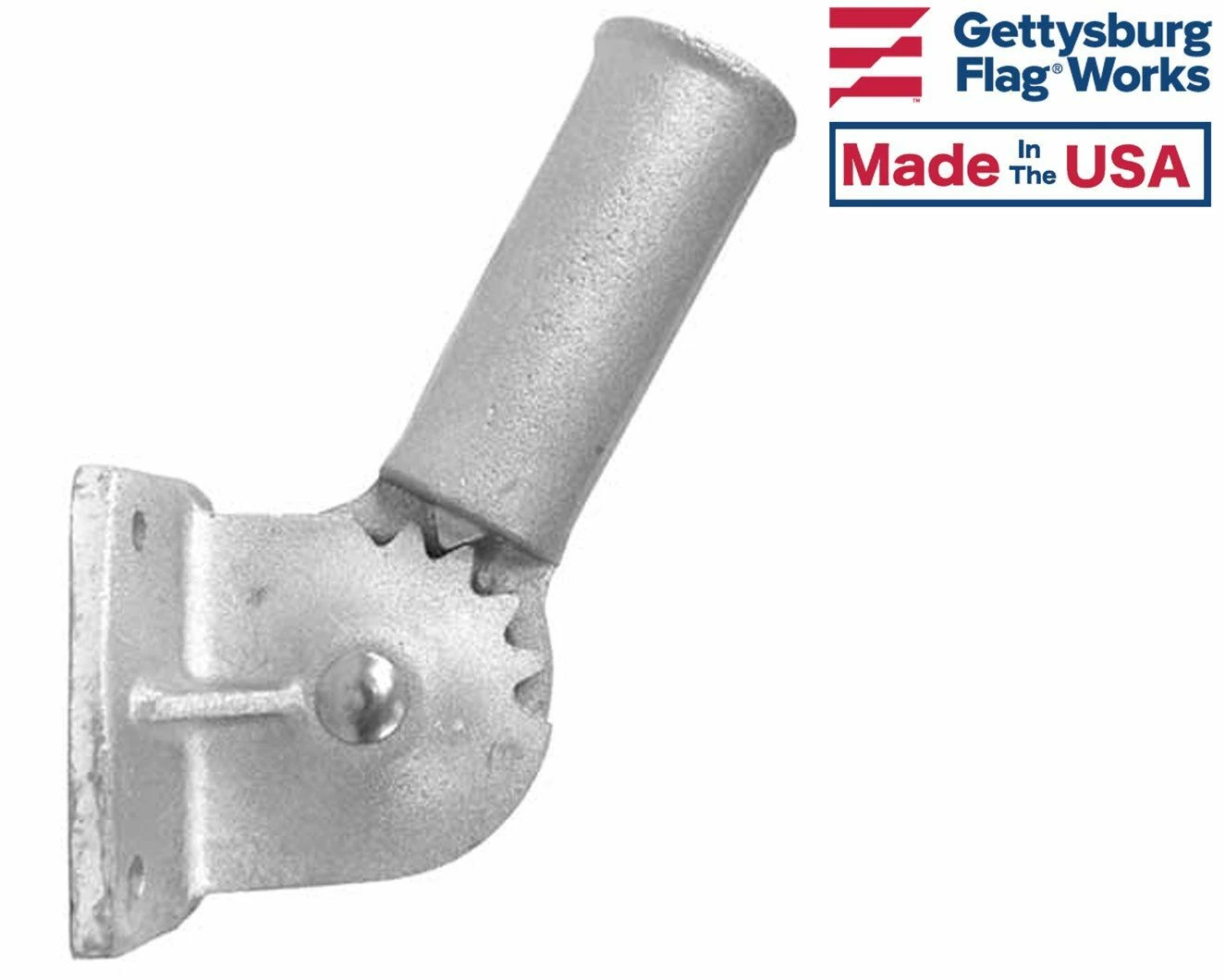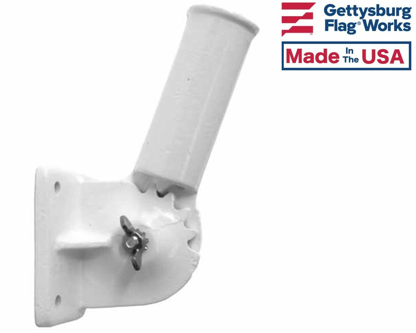 Adjustable metal flag bracket for mounting a residential flagpole to your home. 5 angle options to personalize your look or avoid the flag touching shrubs or your gutters.