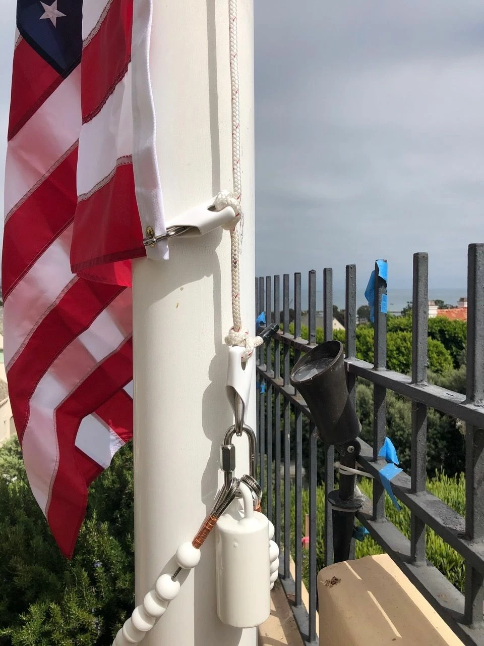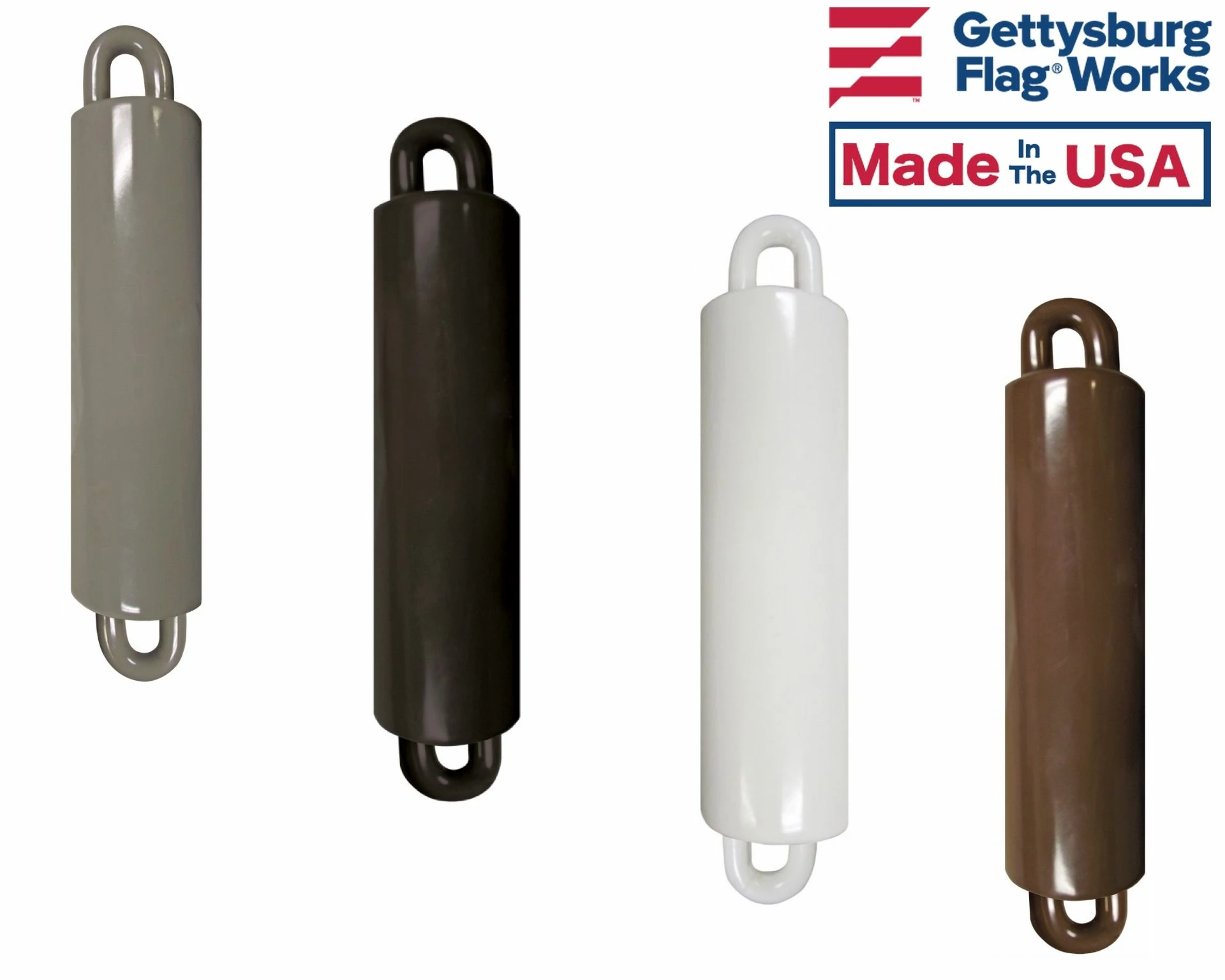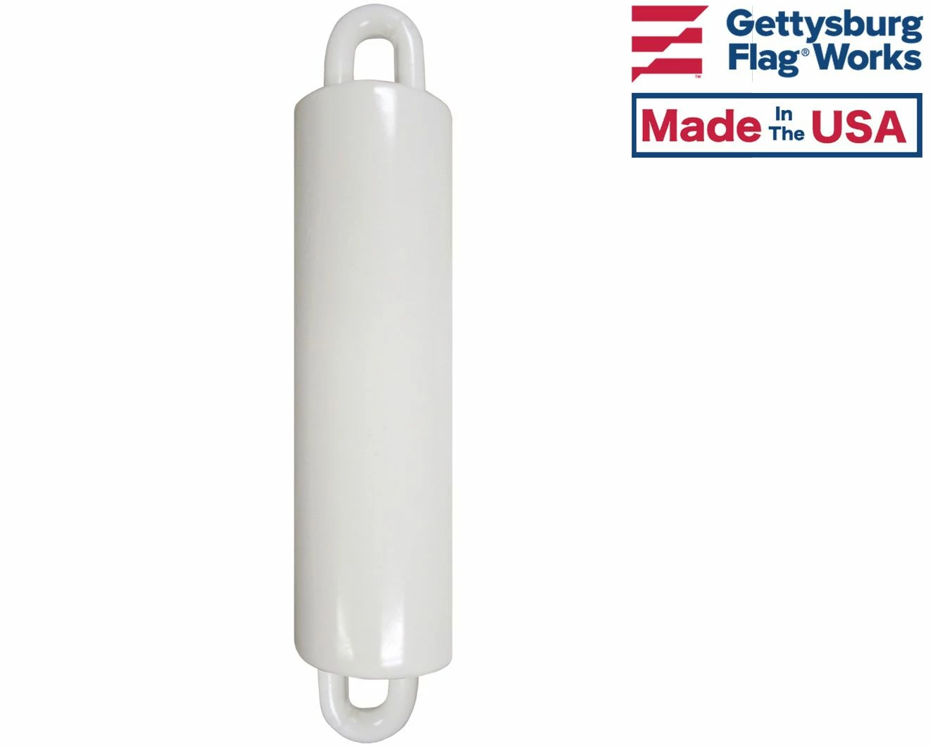 Coated steel weight, attaches to the end of the halyard on an internal halyard flagpole. This keeps the bottom of the flag down, and pulls the flag down when lowering. Not meant to attach directly to the flag, as this can rip your flag. If your flag is pulling away from the pole, try one of the beaded retainer rings.