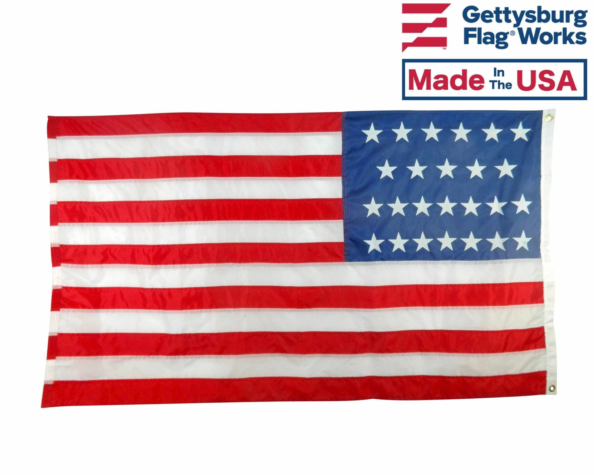- Sewn stripes and applique stars, single-reverse with four rows reinforced stitching for durability
