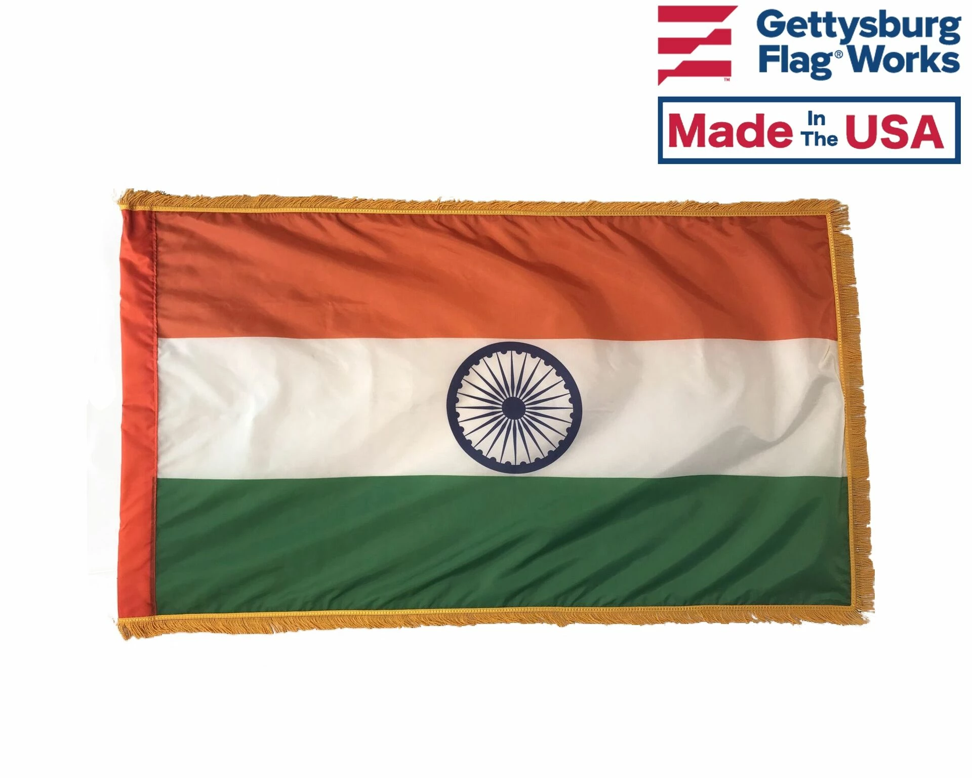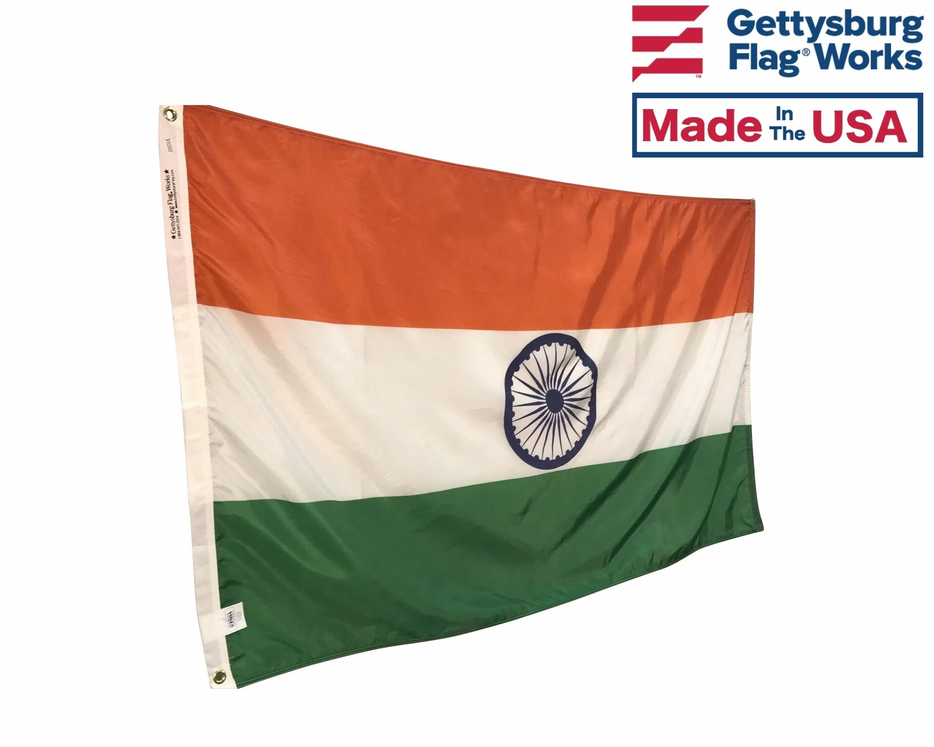 Beautiful, high-quality nylon India flags for mounting on most flagpoles. Choose your size and mounting type. Made in the USA!