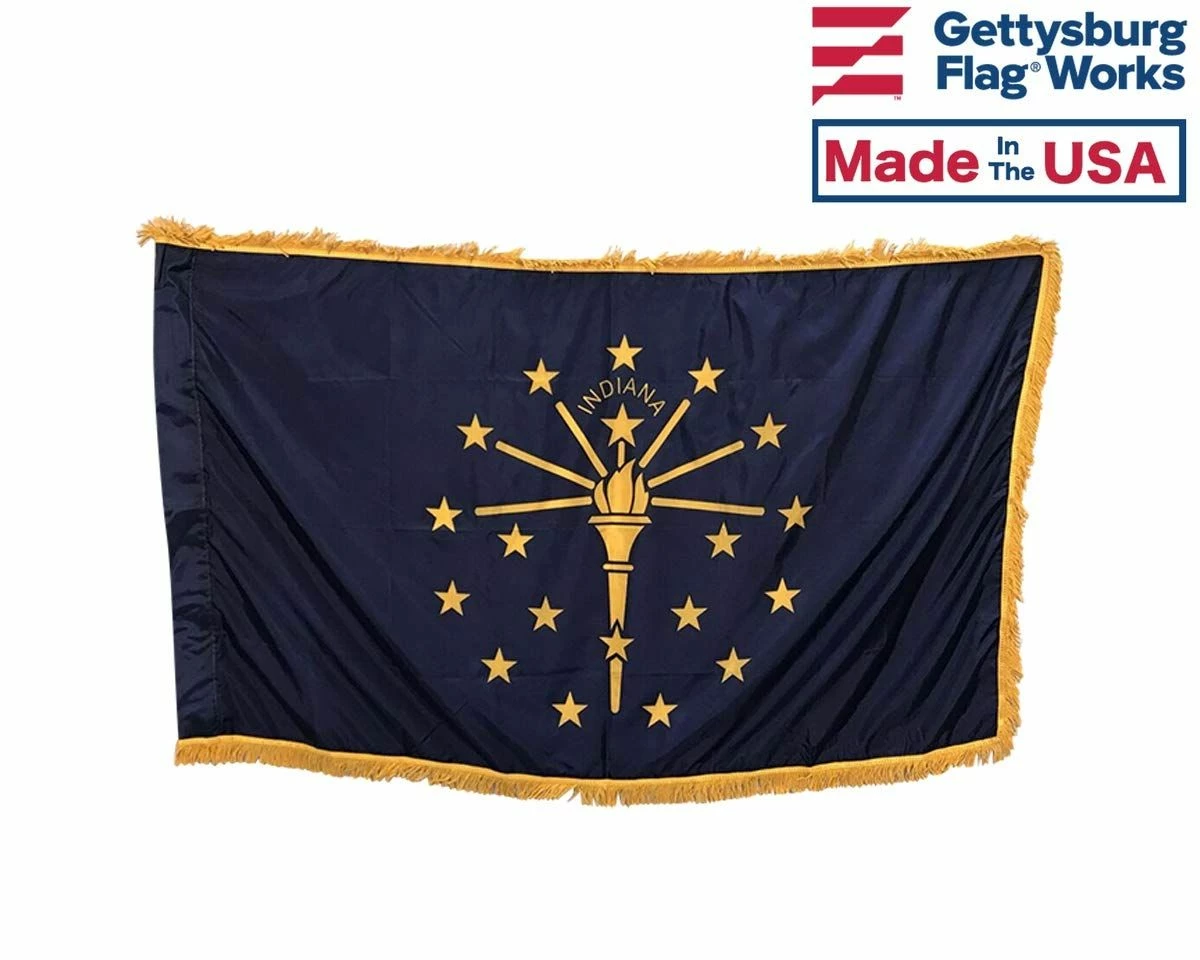 - Top-quality 3×5′ indoor flag with pole hem and fringe, Made in USA