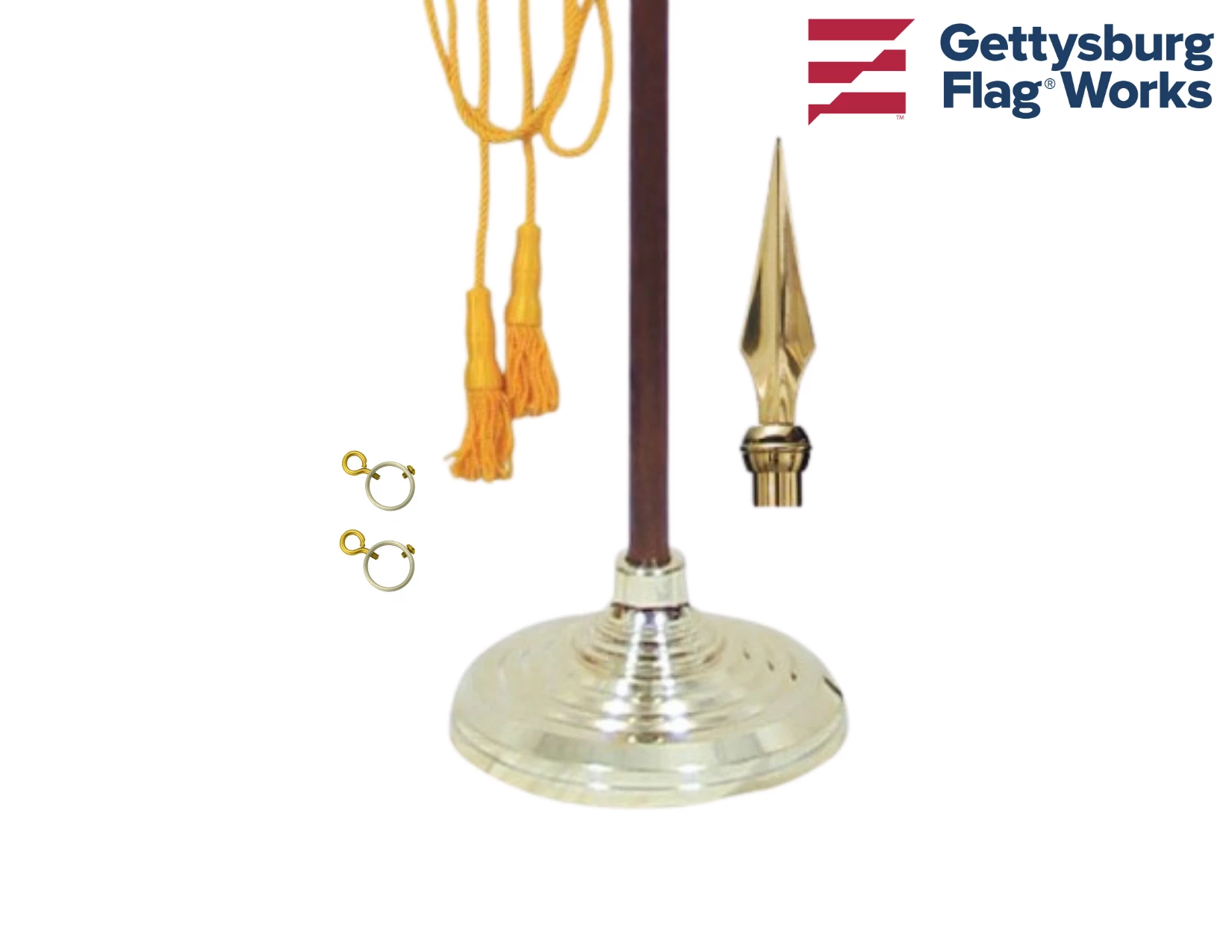 - Complete indoor mounting kit for use with a grommeted flag (flag not included)