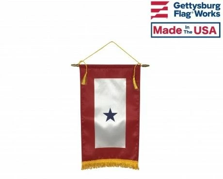 Created in 1917, these banners were popular during WWI & WWII. They are displayed by a family to show that they have a member currently serving in the armed forces. Made for display in the front window of your home.