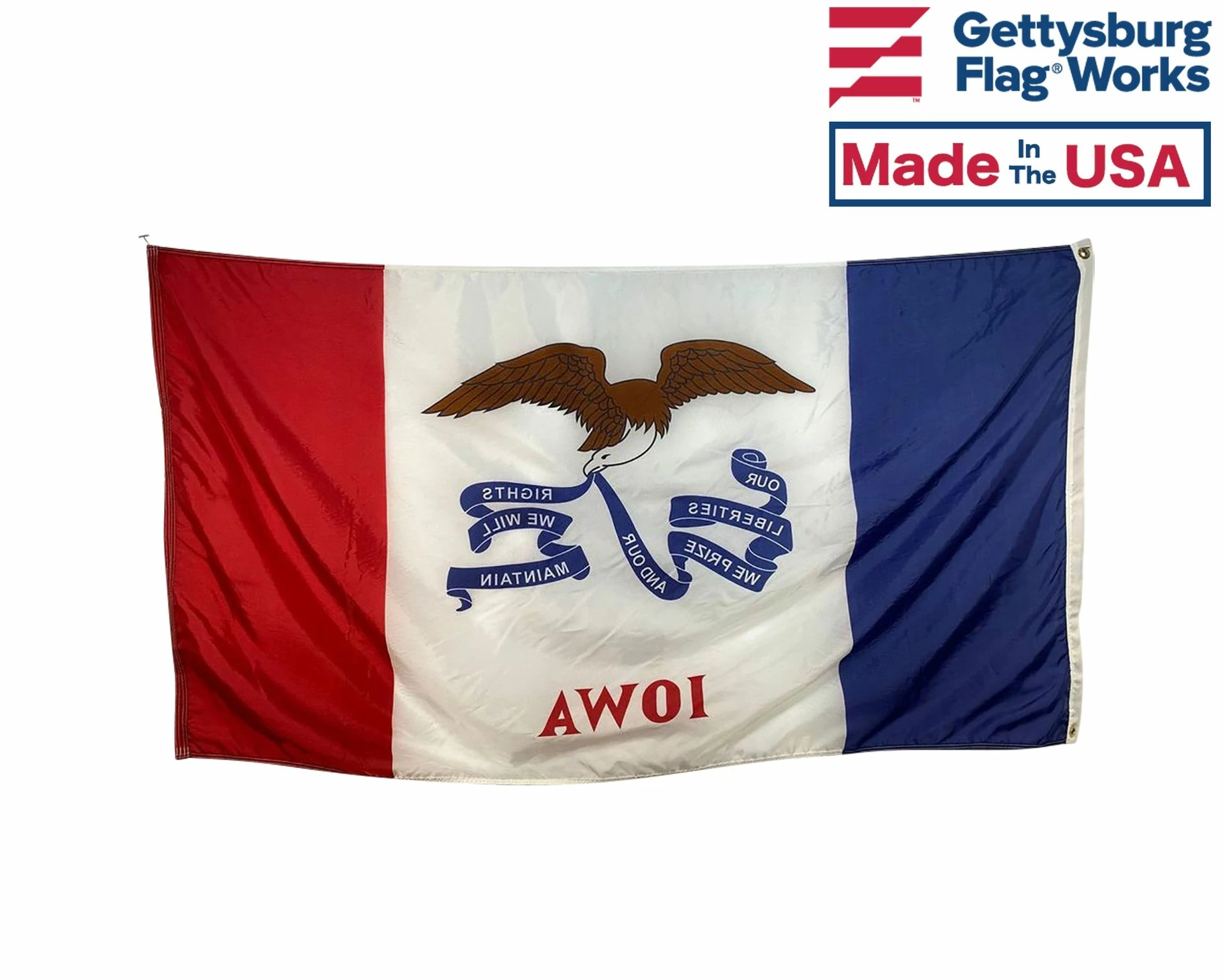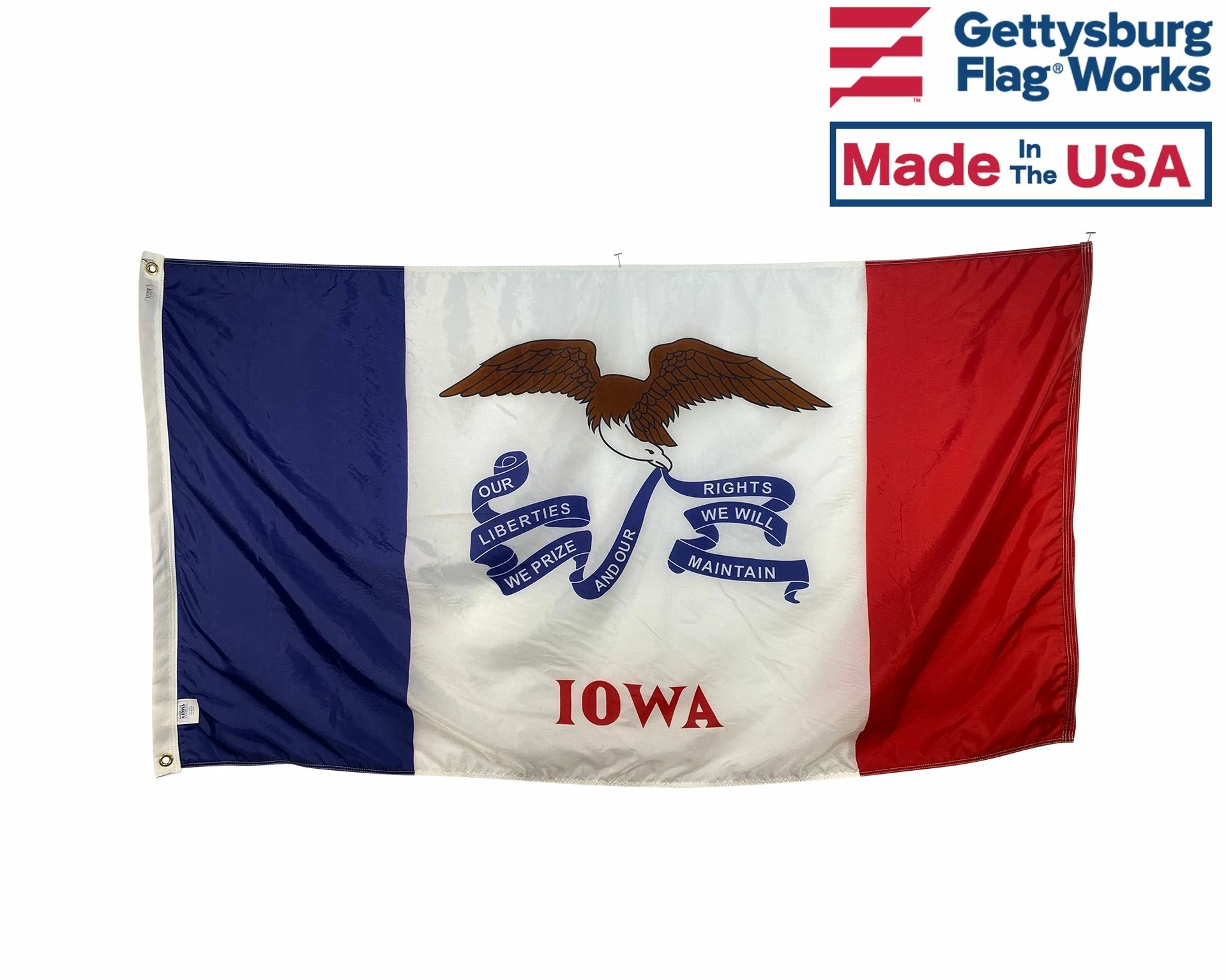 Beautiful, high-quality outdoor Iowa state flags for mounting on most flagpoles. Made in the USA!