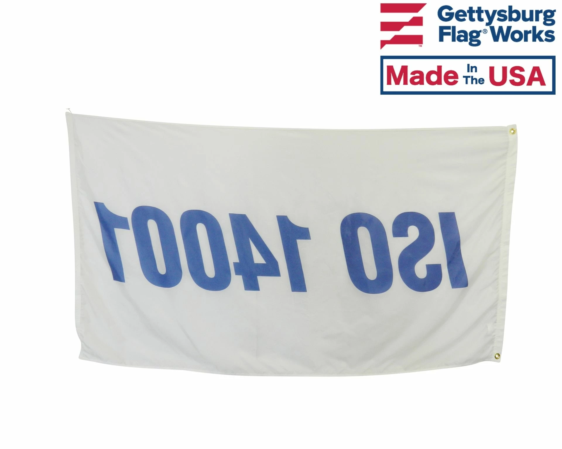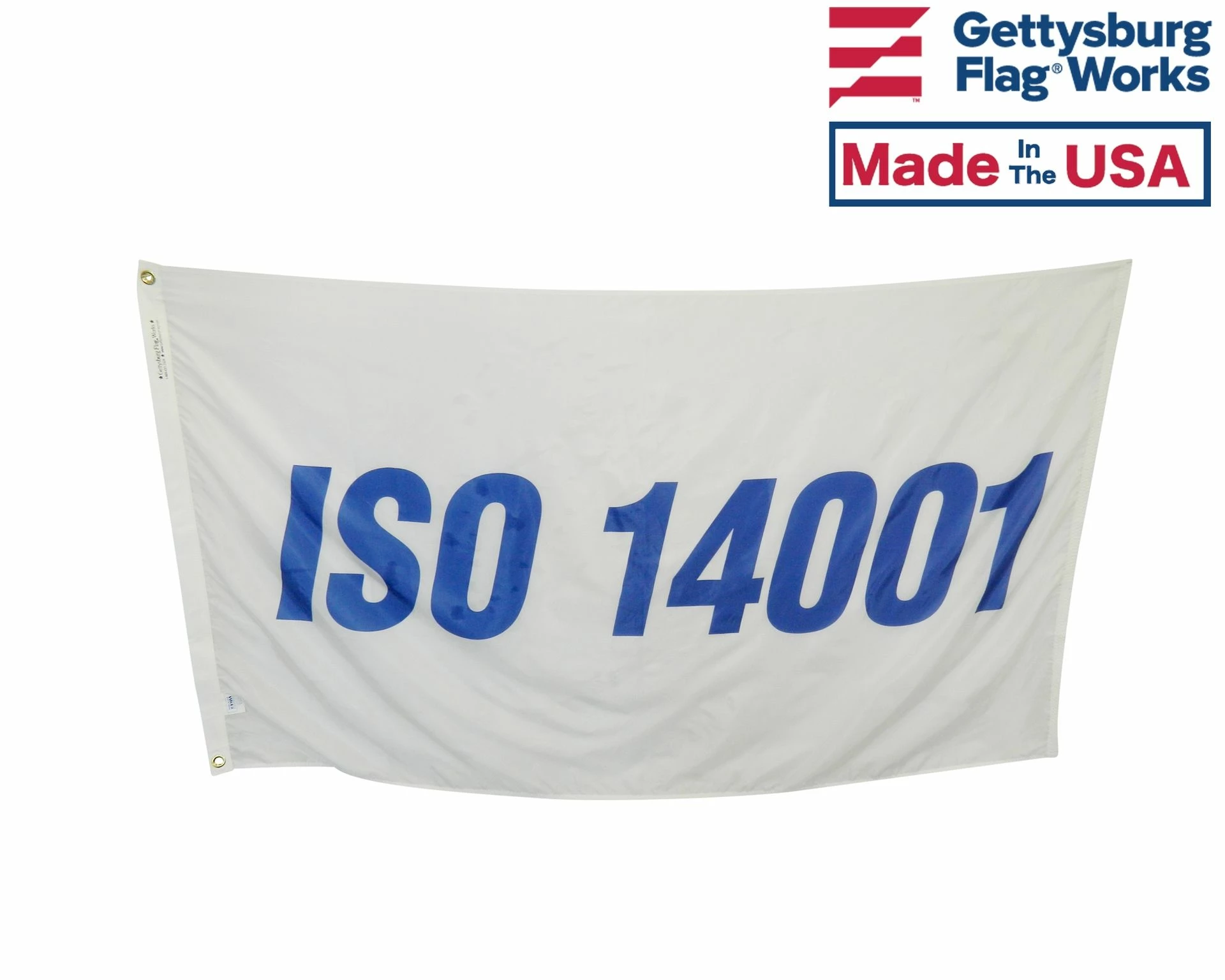 Durable digital print ISO 14001 flag for indoor or outdoor use.