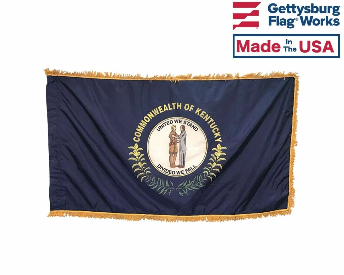 - Top-quality 3×5′ indoor flag with pole hem and fringe, Made in USA