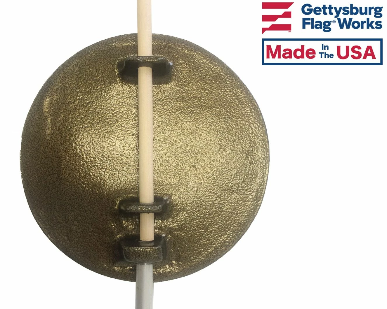 - Gold Solid Bronze 5.25″ Diameter plaque mounted on 21″ tall X 3/8″ diameter brass rod