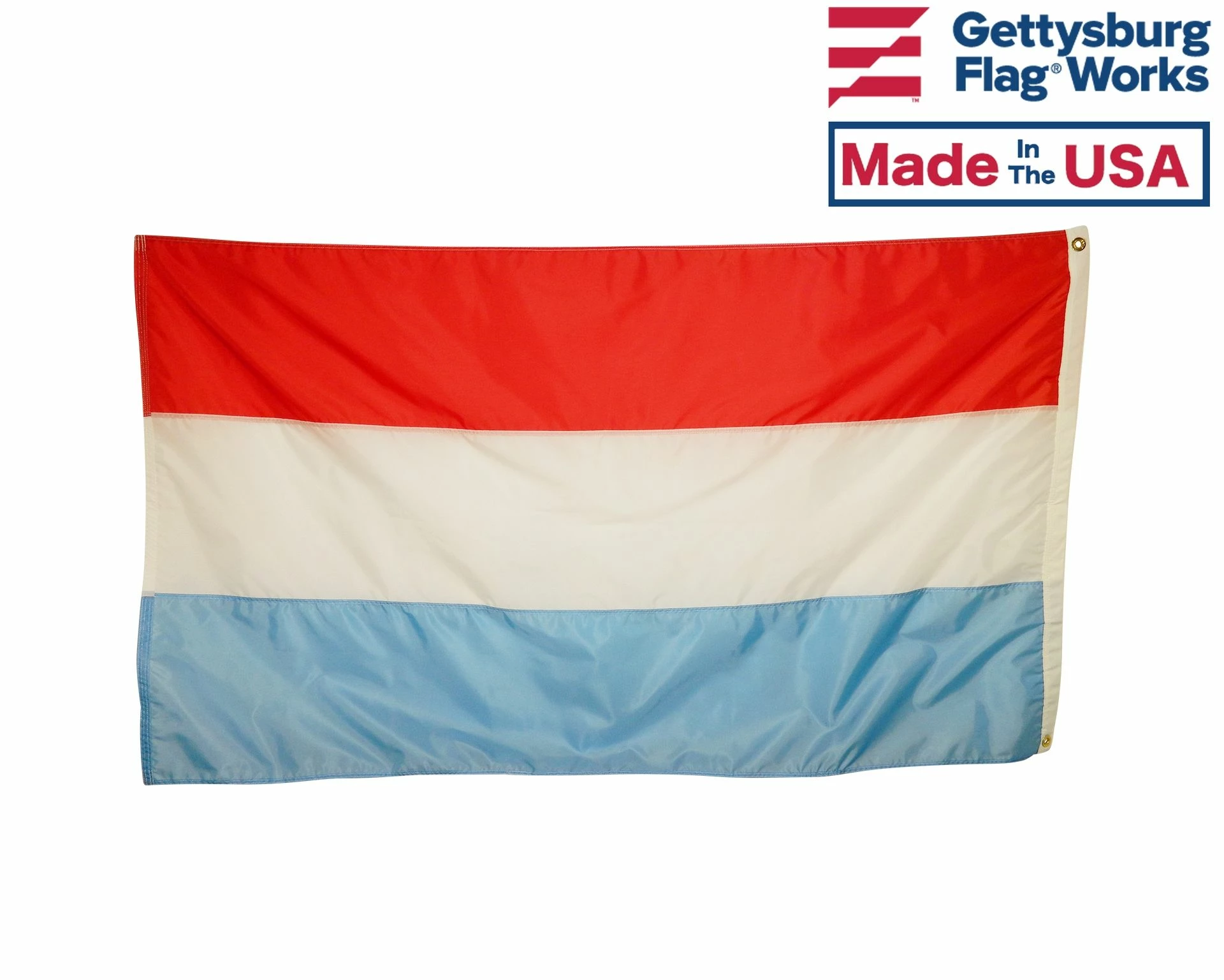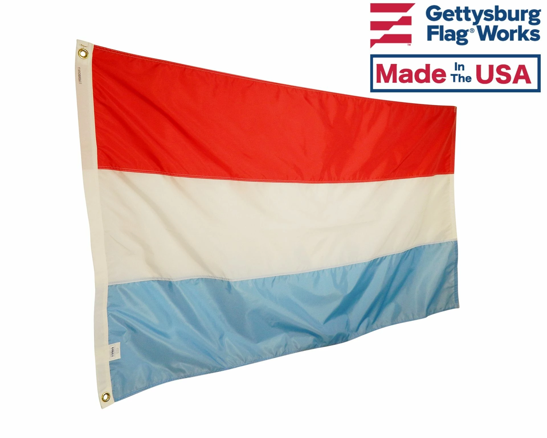 Beautiful, high-quality nylon Luxembourg flags for mounting on most flagpoles. Choose your size and mounting type. Made in the USA!