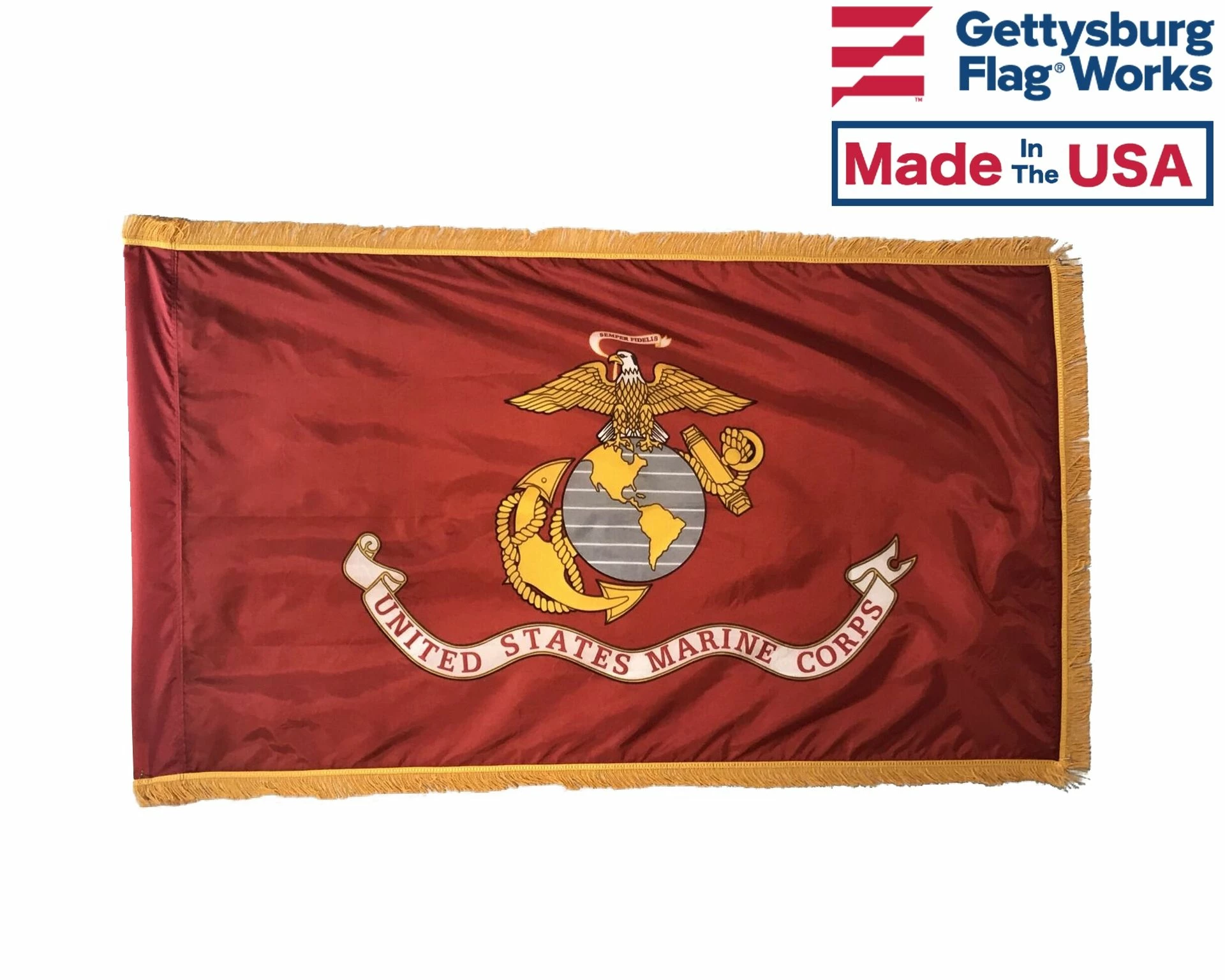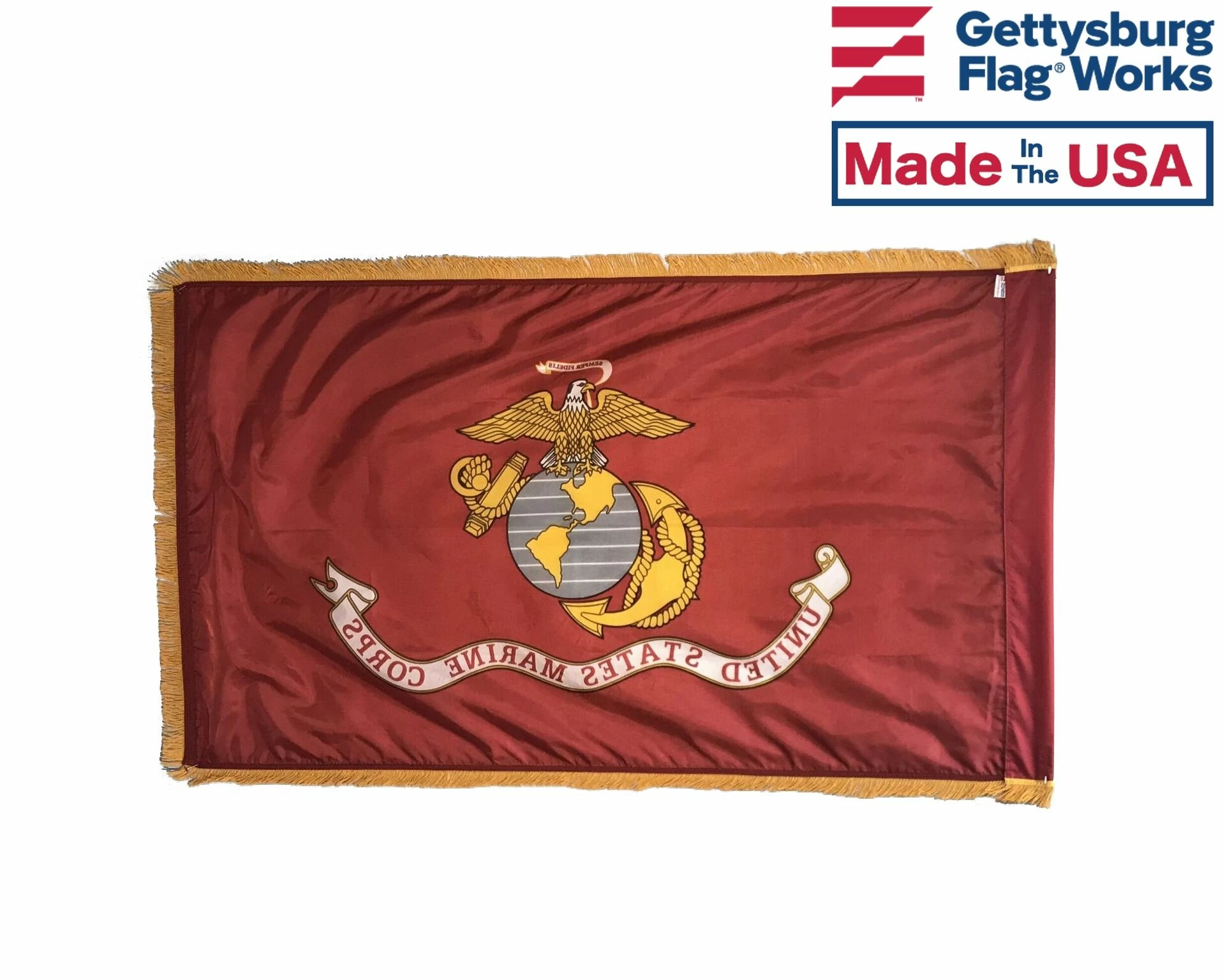 U.S.M.C. Indoor flag set for formal display, includes all necessary hardware.