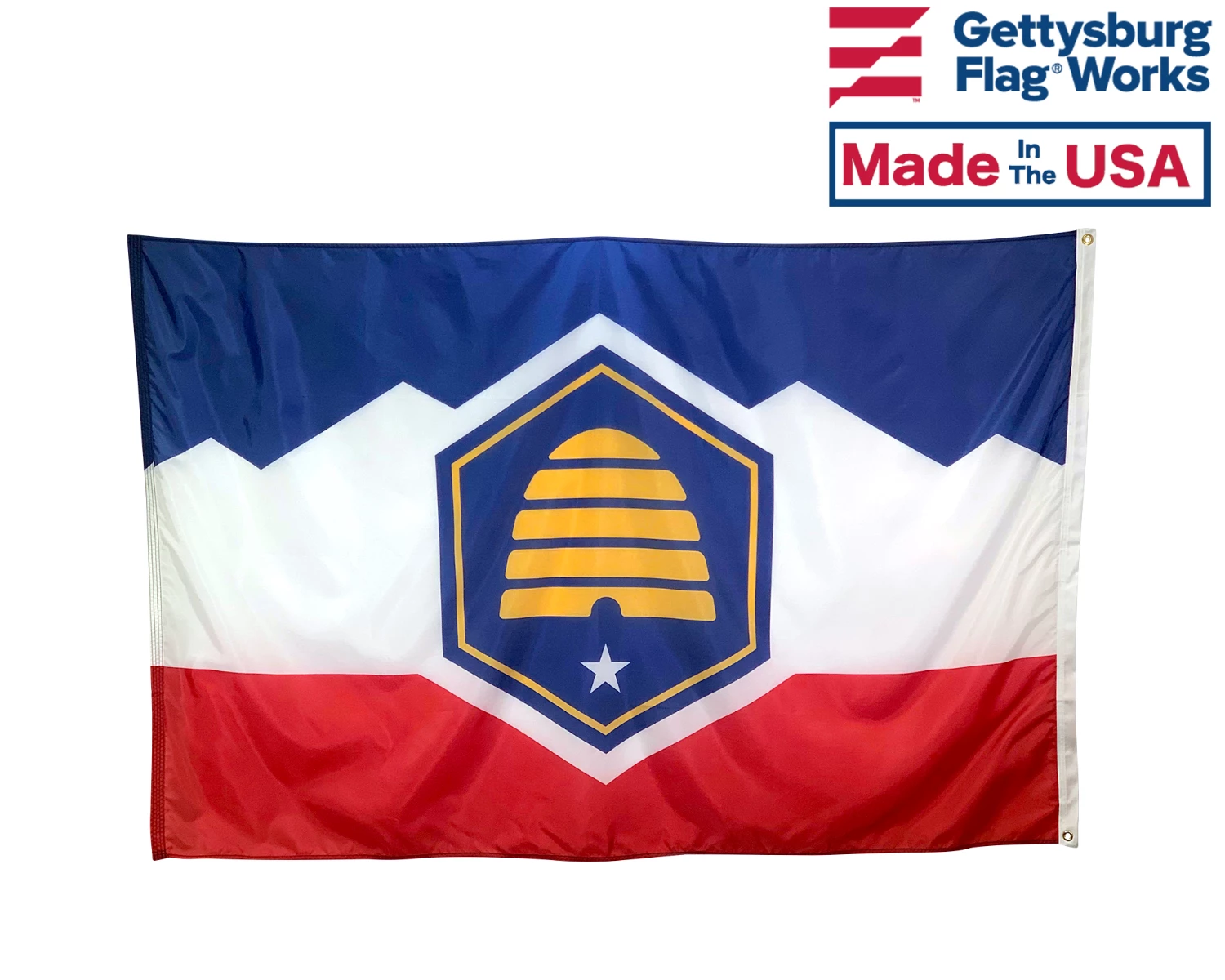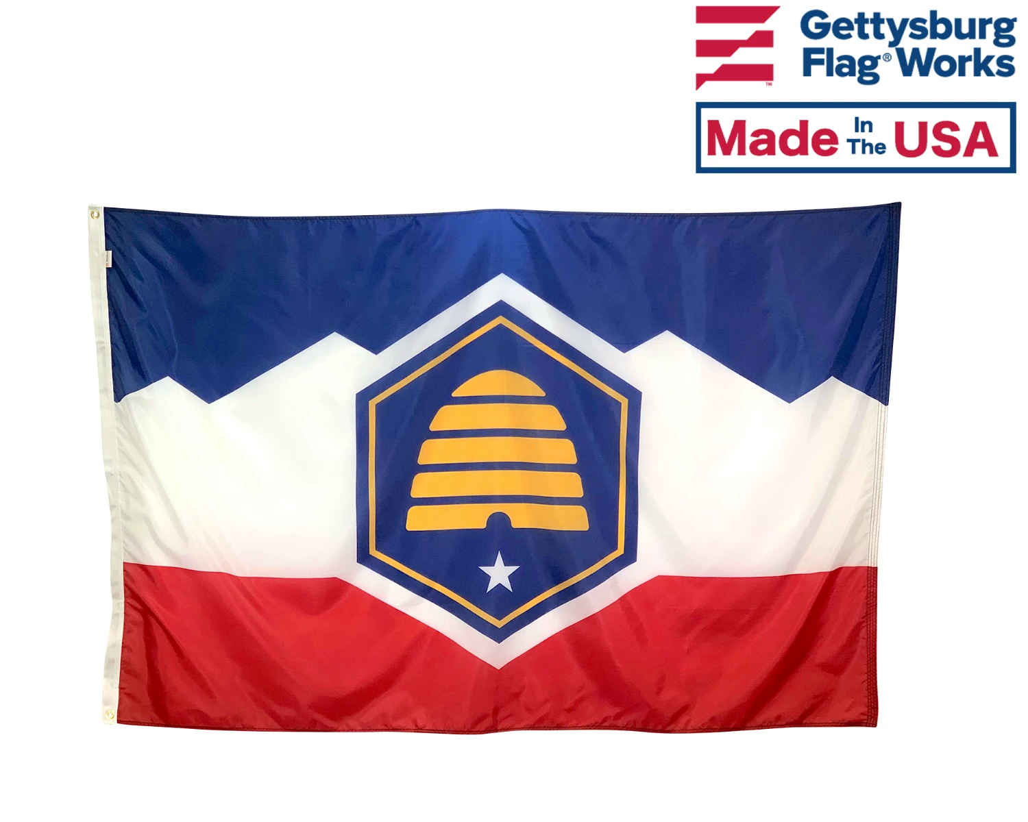 On Tuesday March 21 2023 Utah Gov. Spencer Cox signed legislation authorizing the new Utah State Flag effective March 9, 2024. Utah designated its previous design as the “historic” version of the flag which shall still be flown on State government buildings into the future. The new flag features the red rocks of Southern Utah, white mountain imagery and deep blue skies surrounding a beehive representing industriousness and community.