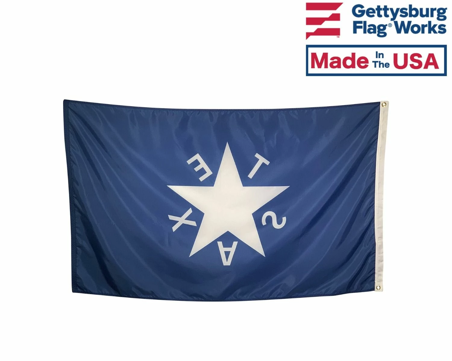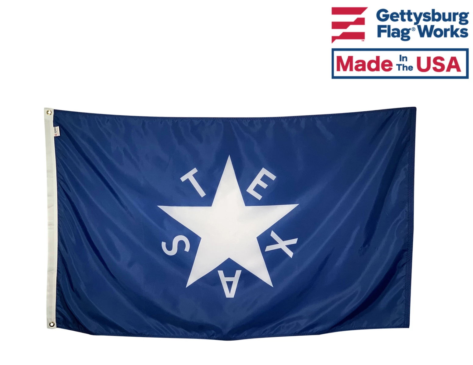 Considered the 1st official flag of the Republic of Texas as adopted in 1836 after Texas declared independence from Mexico. Design is credited to the well known Tejano patriot Lorenzo de Zavala. Replica of the original Lone Star flag
