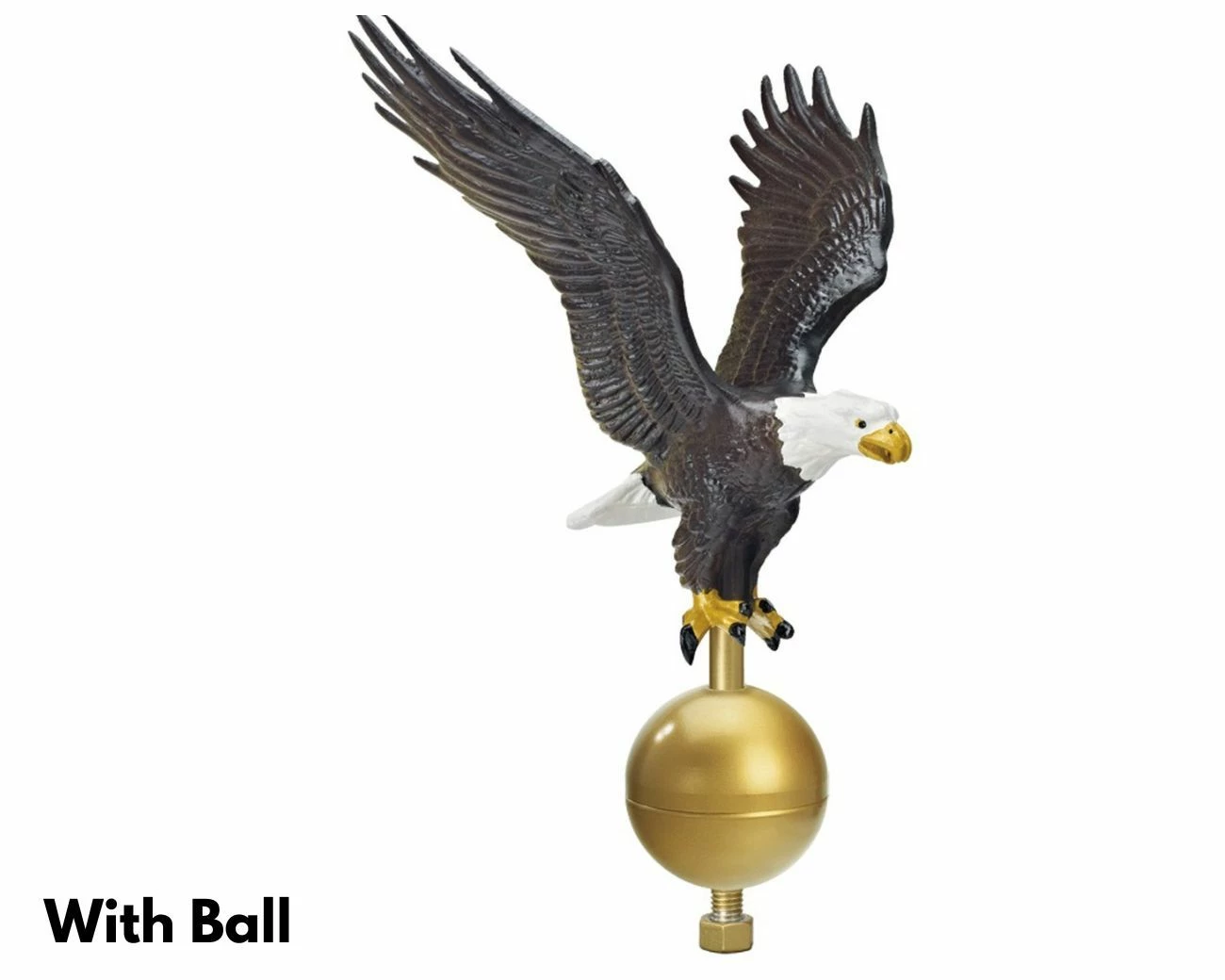 Beautiful natural painted aluminum flagpole eagles in a variety of sizes and styles.