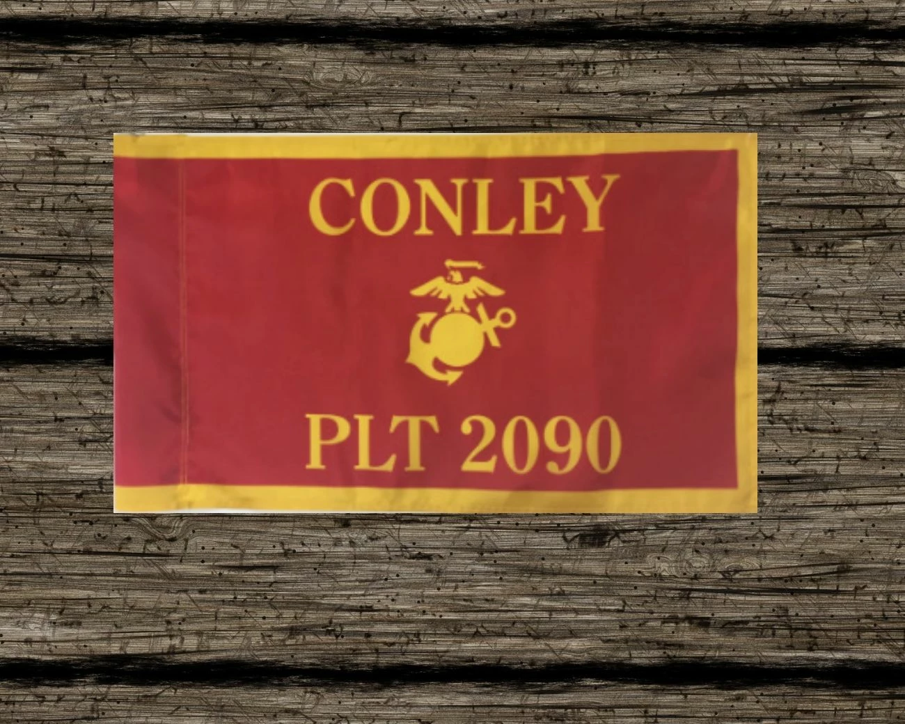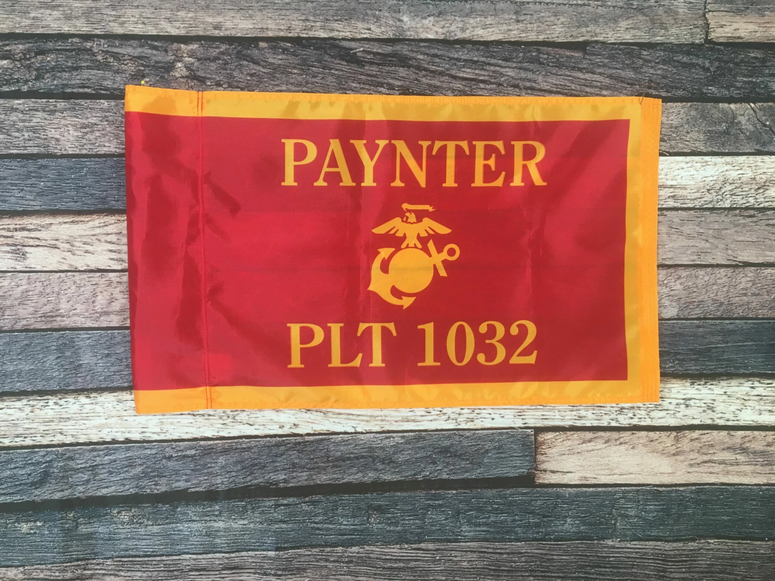 What better way to show pride in your new Marine than recognizing him/her on a flag. These high quality, customized flags will get the job done-at graduation and then can be displayed at home, for years to come. It only take a few steps – insert your new Marines name and platoon number and show your pride.