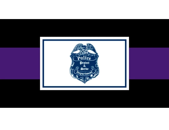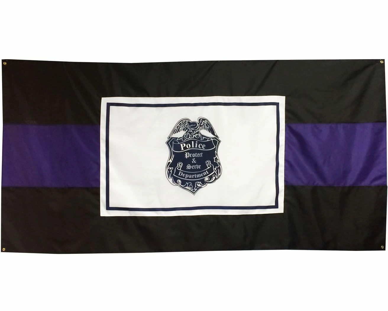 - Sewn Black-Purple-Black with digital print flag appliquéd on center