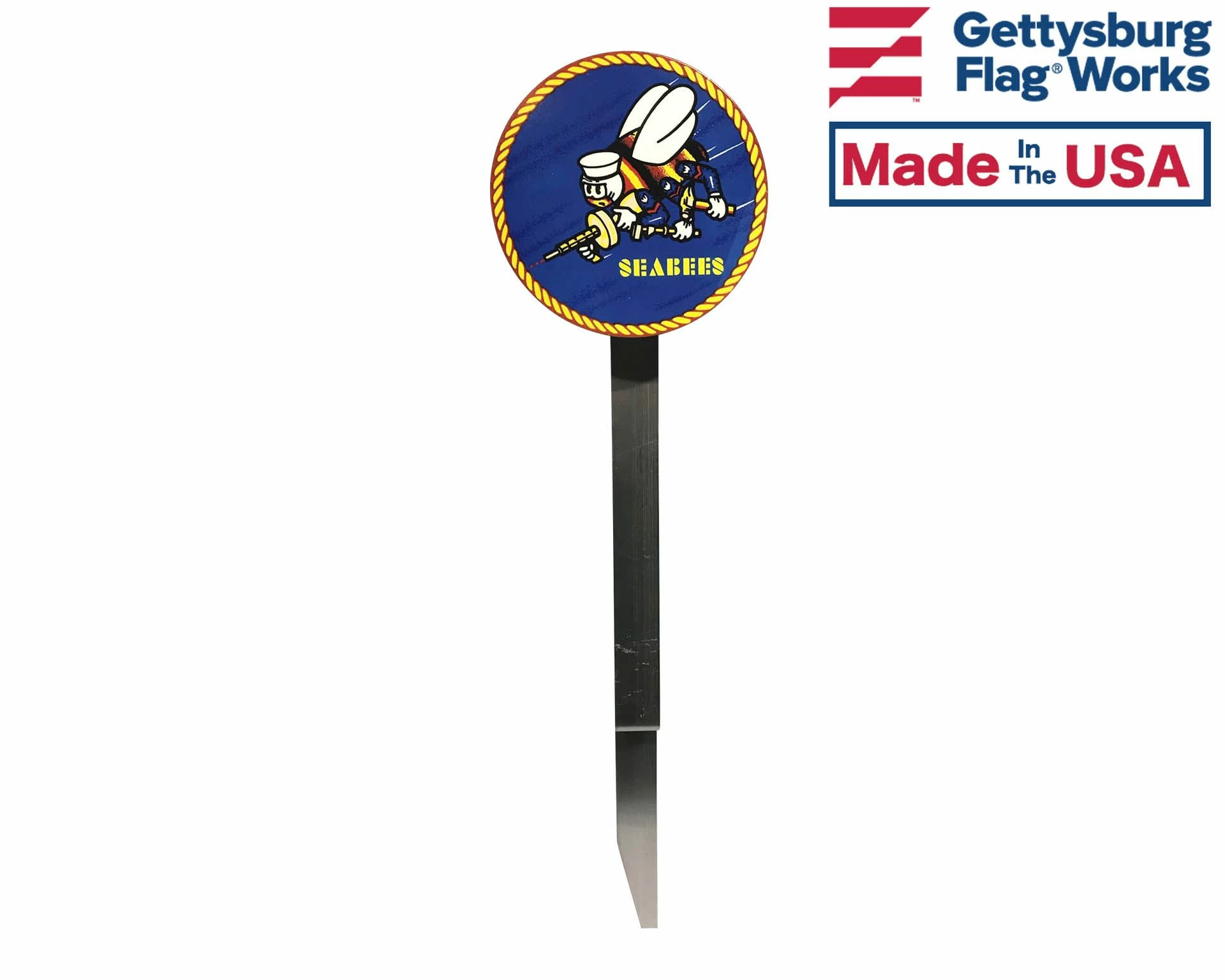 Seabees Can Do! emblem on a grave marker. Holds a flag 8×12″ or 12×18″ securely upright in the ground or in a planter.