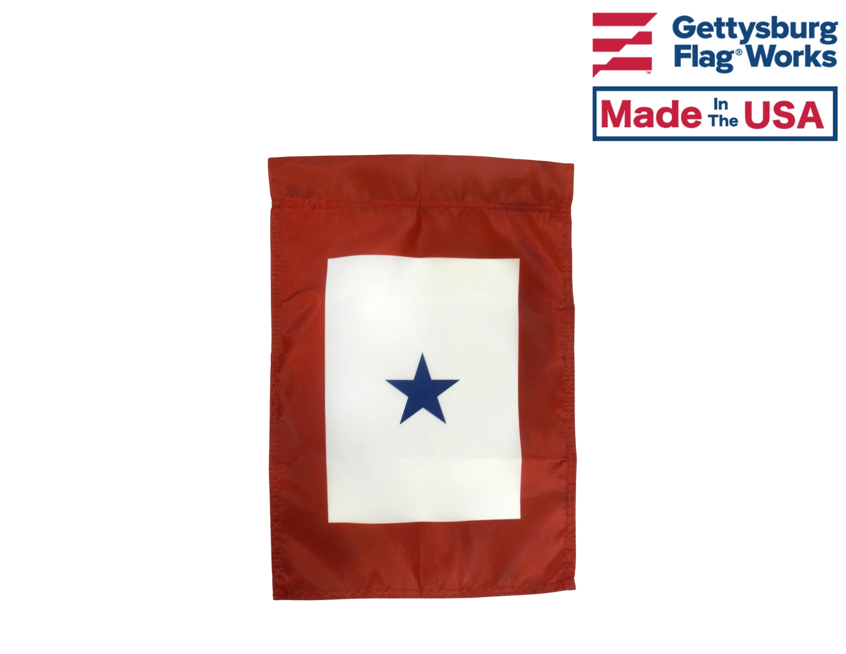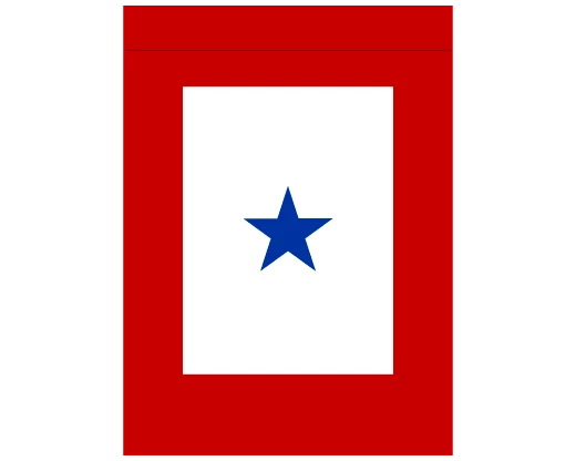 One blue star, service star banner. Signifies one family member deployed in the United States military.