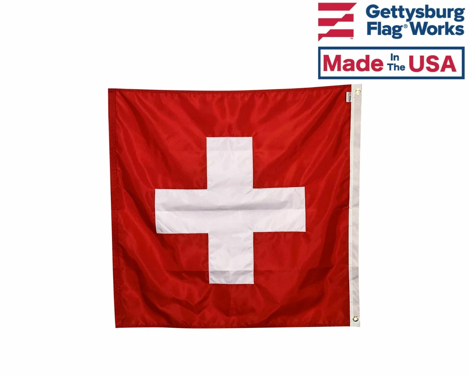 The traditional square design of the Switzerland flag, fully sewn.