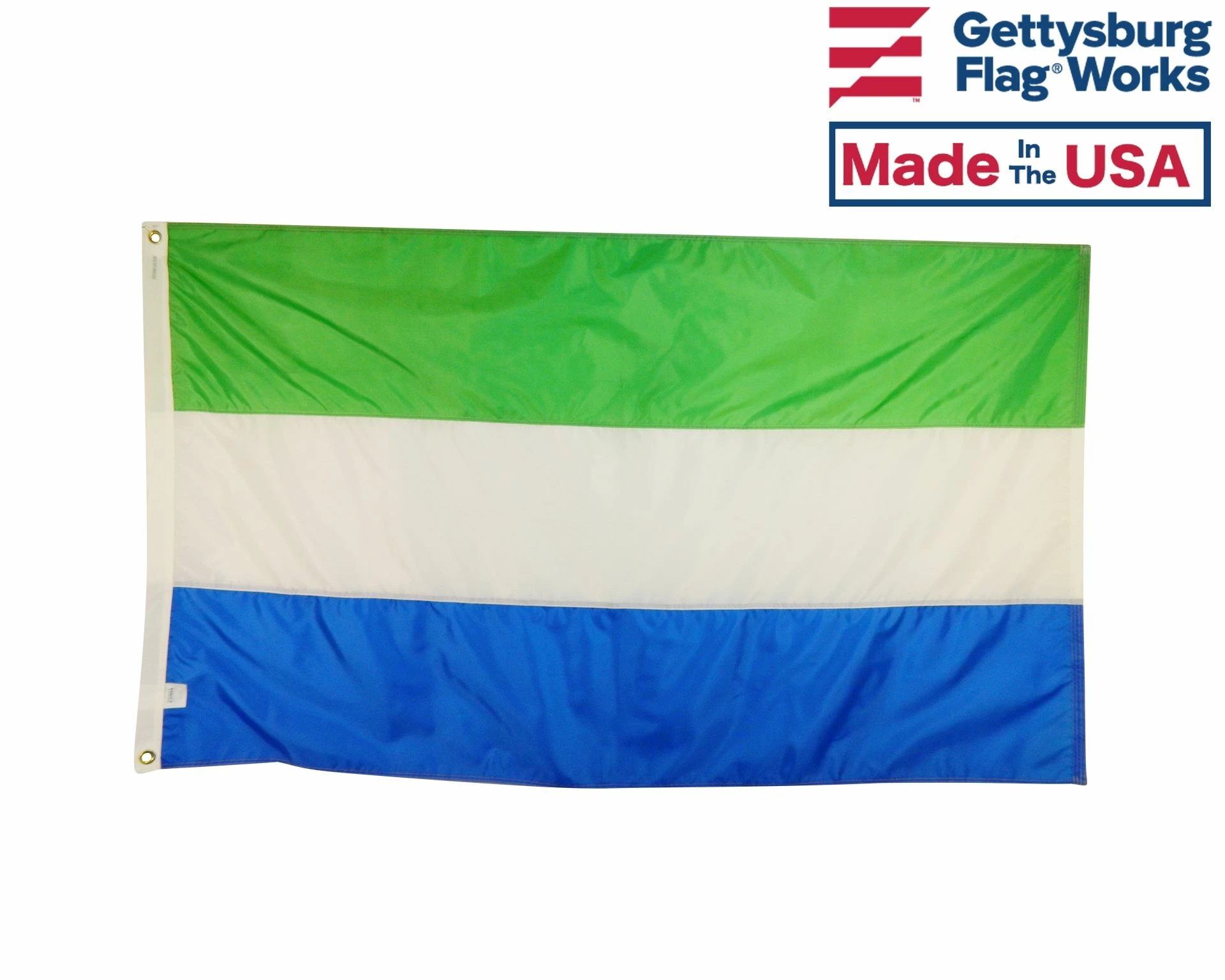 Beautiful, high-quality nylon Sierra Leone flags for mounting on most flagpoles. Choose your size and mounting type. Made in the USA!