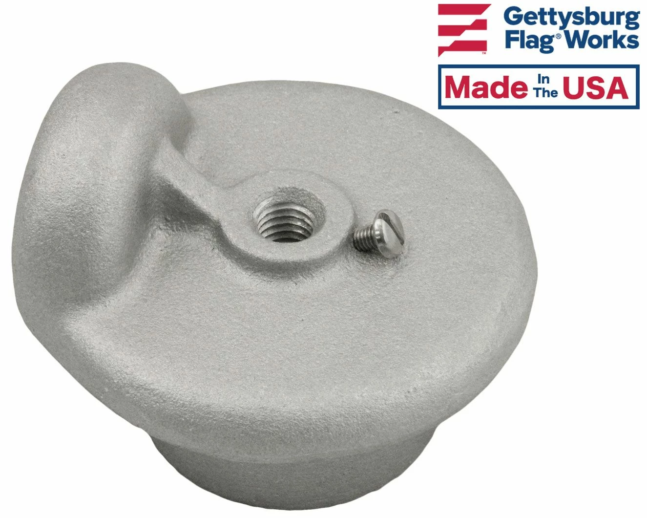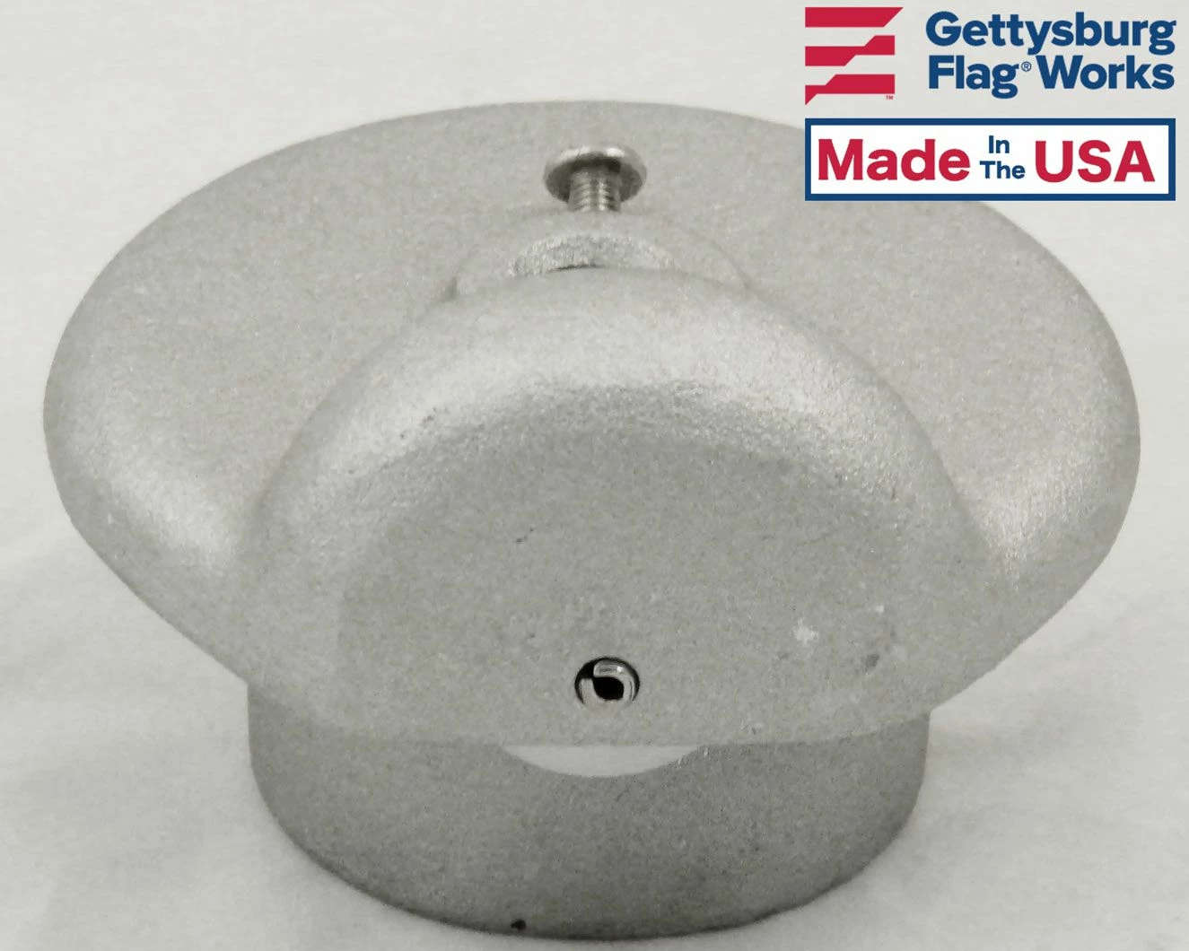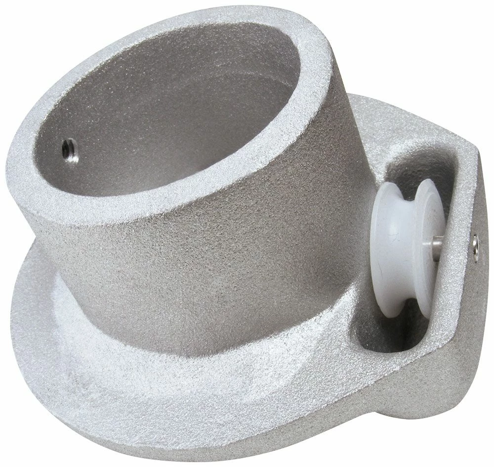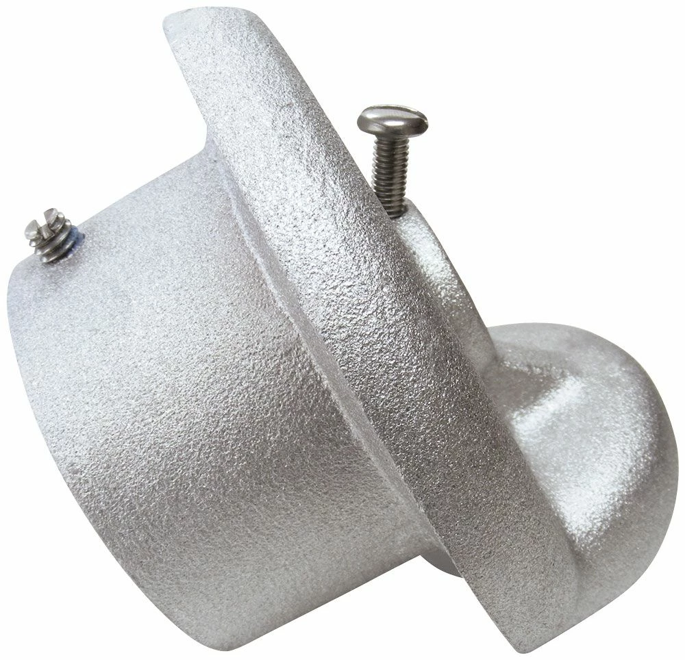 Cast aluminum construction with a 1″ outside diameter nylon pulley on a 3/16″ stainless steel axle. Designed to slip over the top of the flagpole and be secured with one 1/4″-20NC stainless steel set screw. The top is designed to accept an ornament with a spindle threading of 1/2″-13NC as standard. The ornament is secured to the truck with a size 10-32 stainless steel pan head screw. Maximum halyard diameter is 1/4″