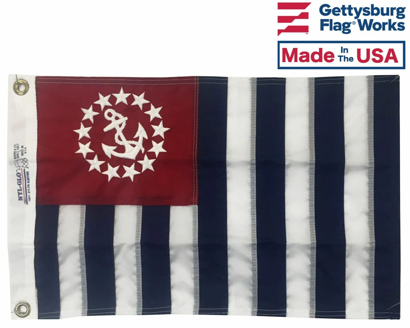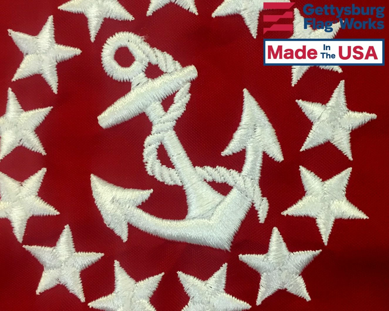 Our marine flags are made of durable 100% nylon fabric. These flags feature sewn or embroidered stars, and sewn stripes with a heavy canvas heading and brass grommets.